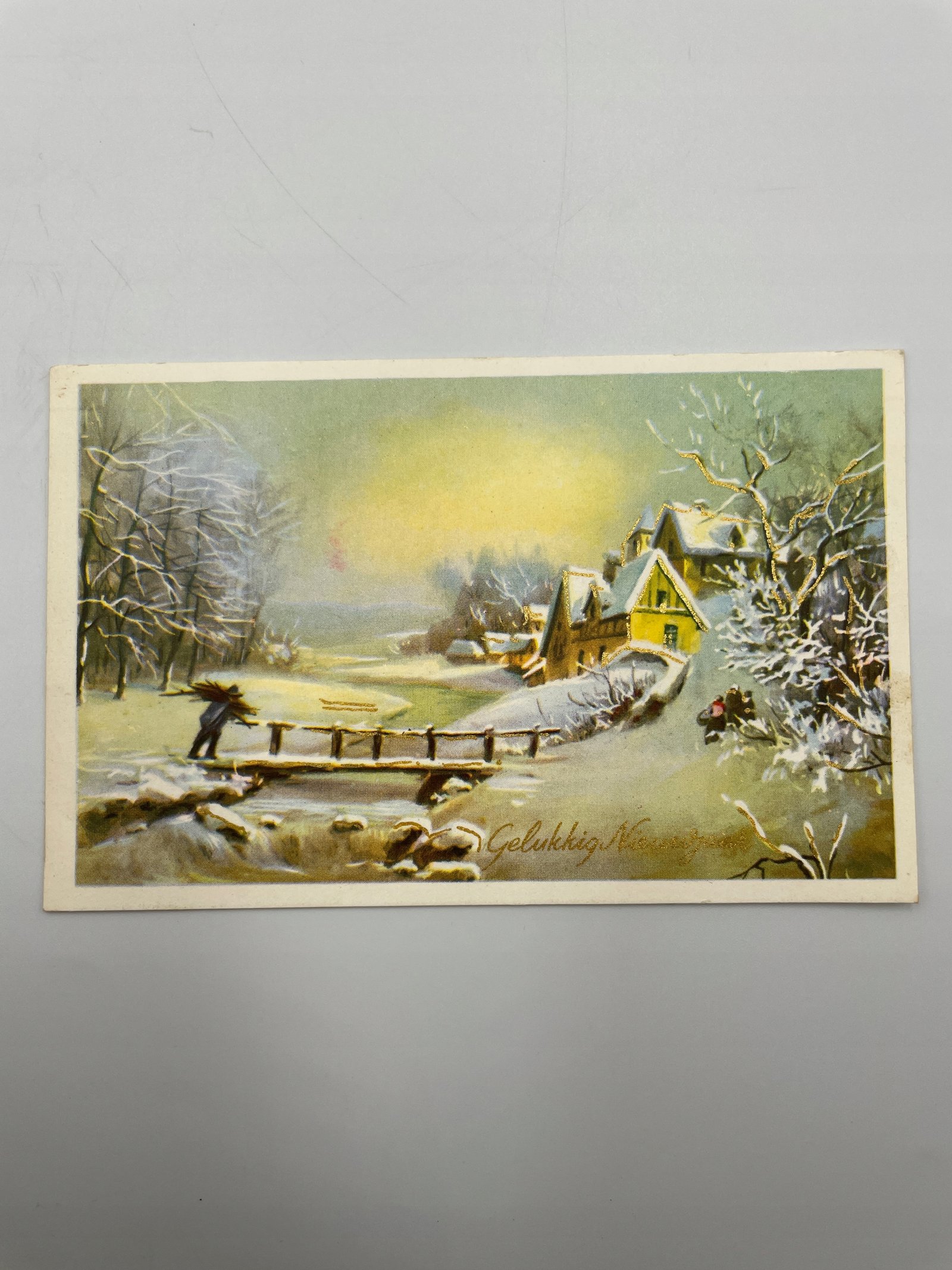 Kartka Belgia 1960 zimowy pejzaż z domami i mostkiem