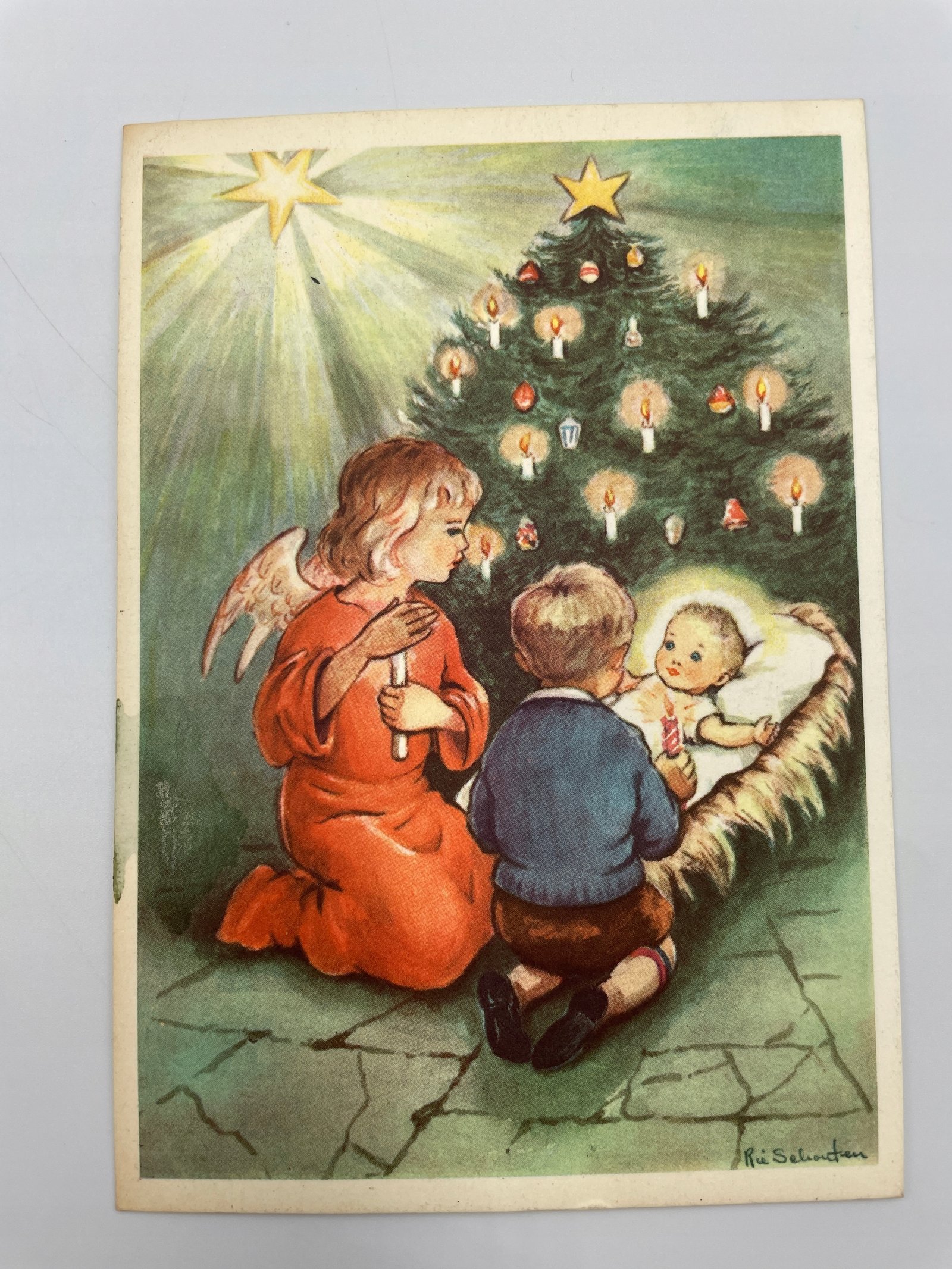 Kartka pocztowa Belgia 1961 anioł dziecko choinka Rie Selantten
