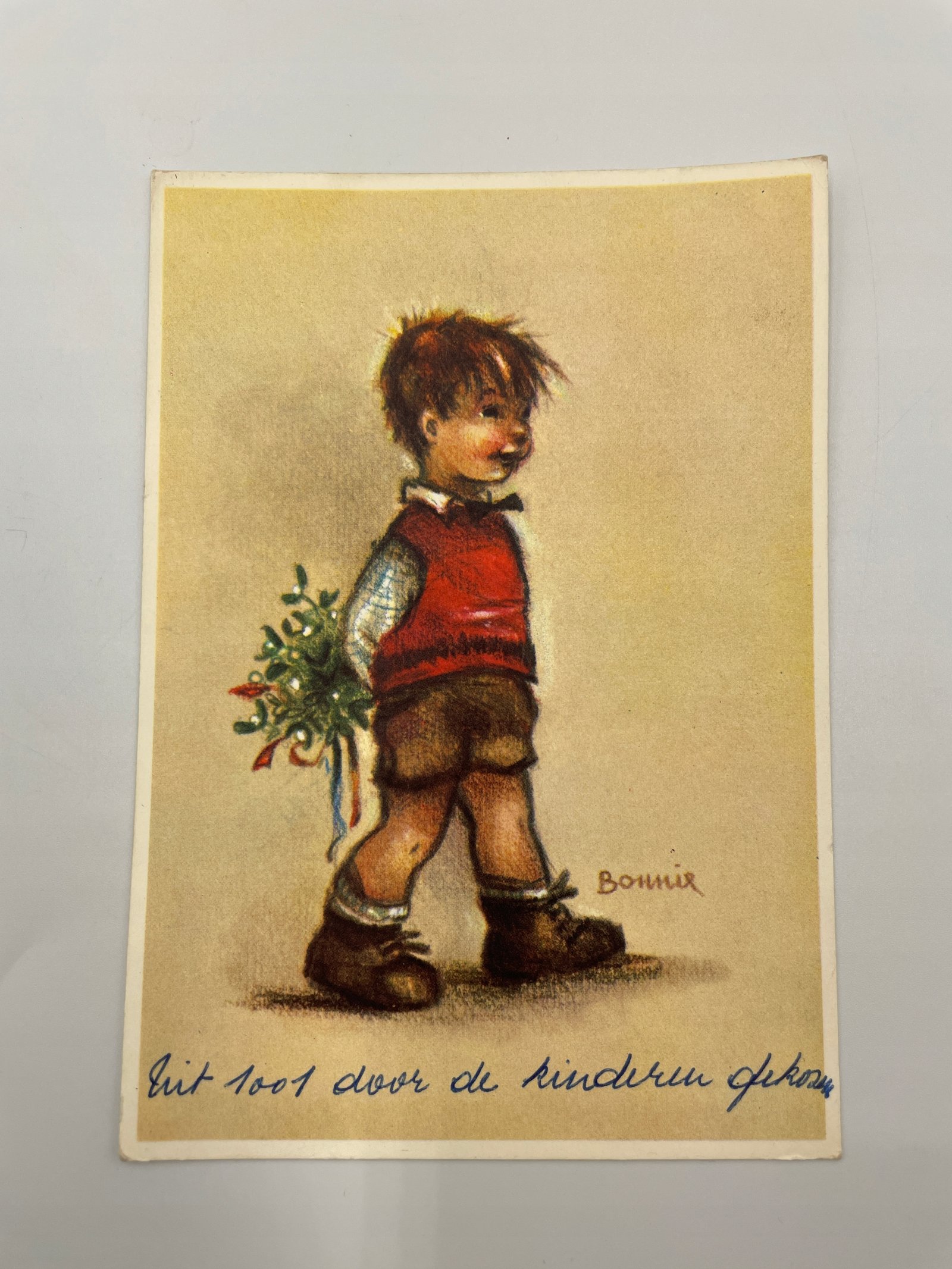Kartka pocztowa Belgia 1961 chłopiec z bukietem Bonnier Uitg. Lutosa