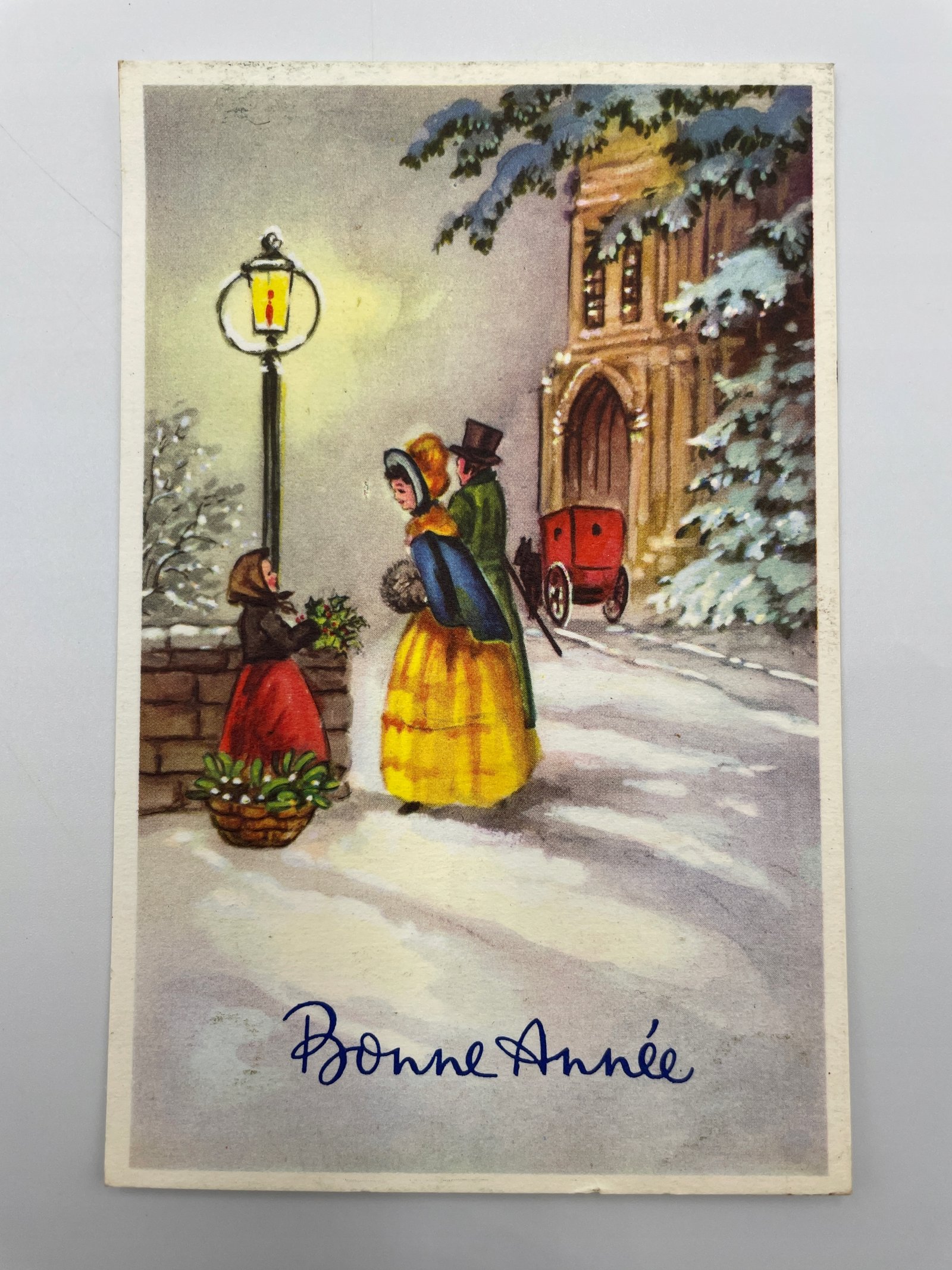 Kartka Belgia 1961 Bonne Année para przy latarni i dziewczynka z kwiatami