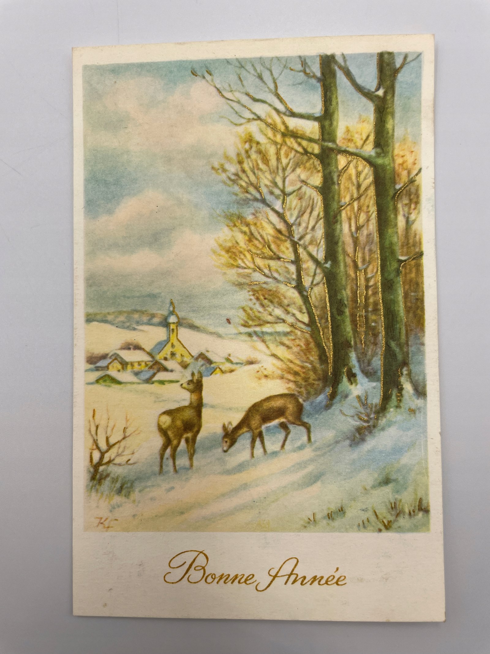 Kartka pocztowa Belgia 1962 wieś i jelenie Bonne Année