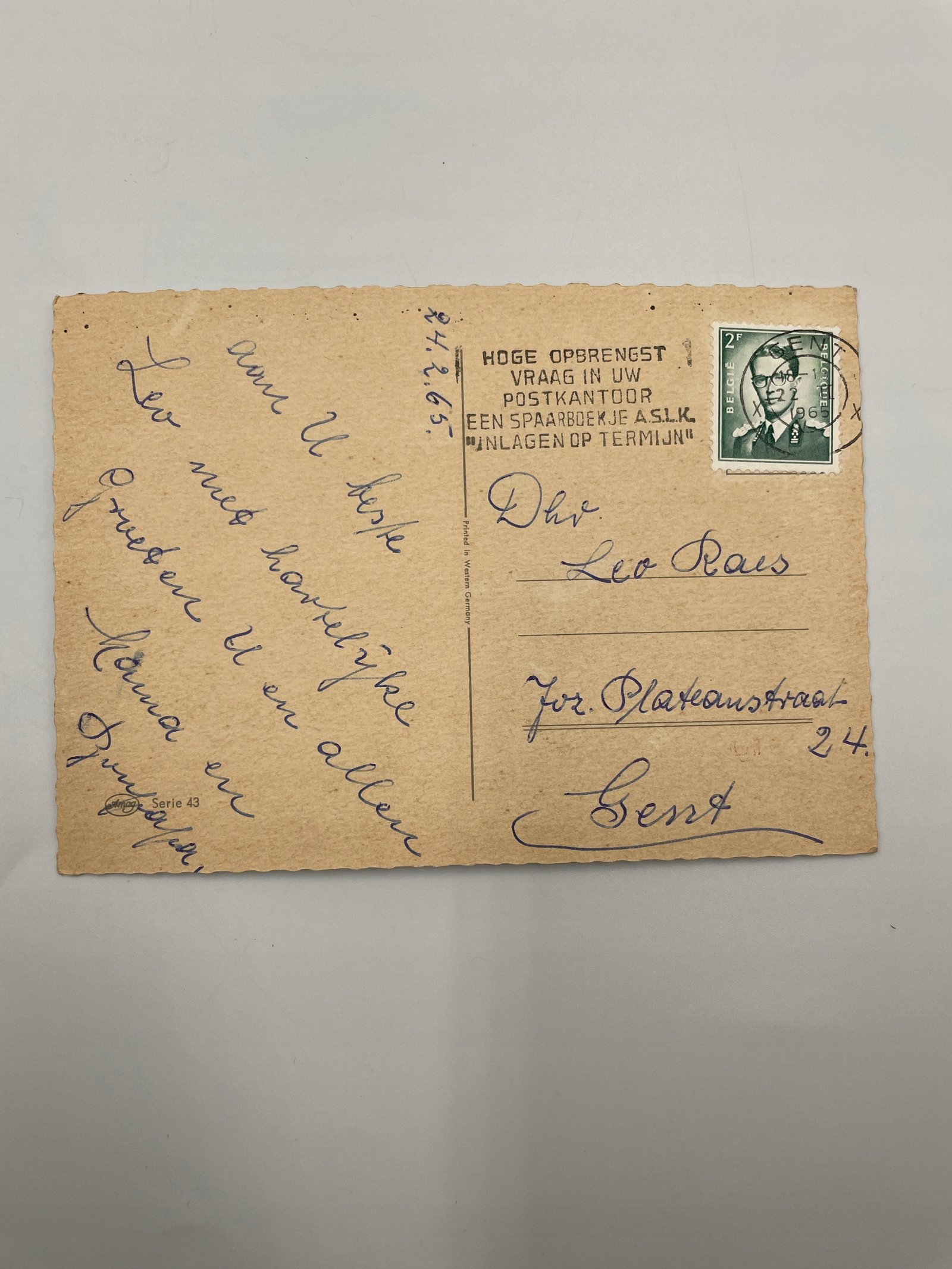 Kartka Belgia 1965 Urodziny kwiaty tekst wiersz Serie 43