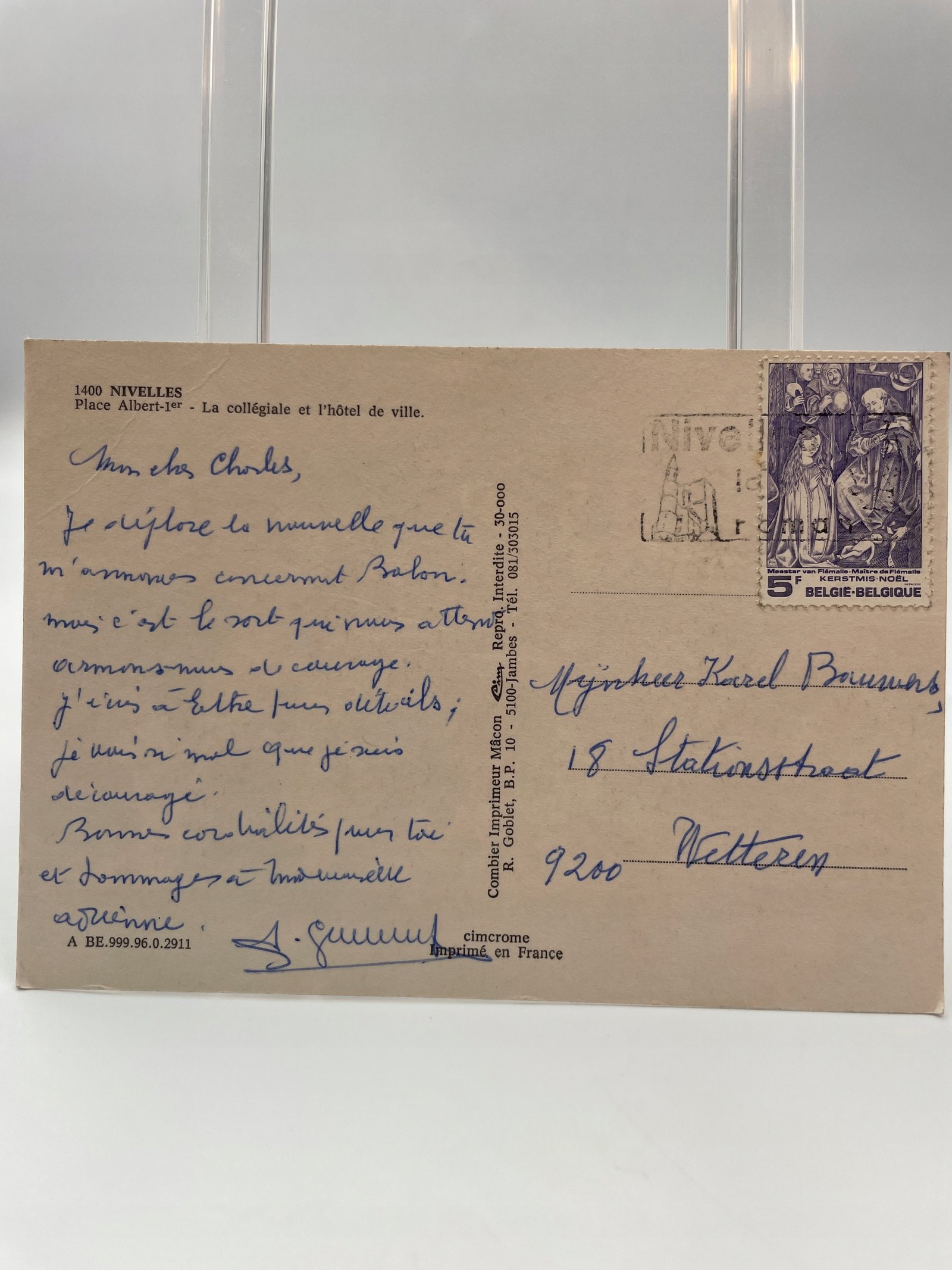 Kartka pocztowa Francja 1960 Nivelles plac Alberta I ratusz kościół