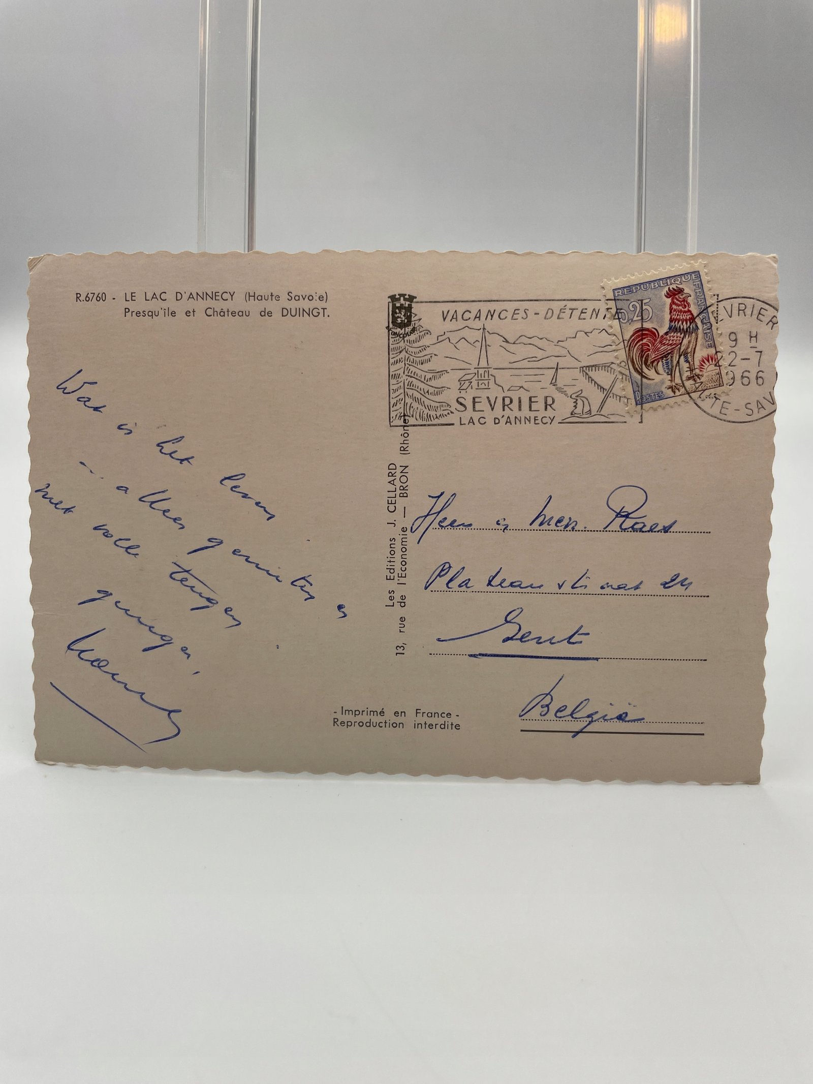 Kartka pocztowa Francja 1966 zamek Duingt nad jeziorem Annecy wyd. Celard