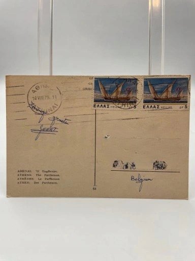 Kartka pocztowa Grecja 1979 Ateny Partenon statek na znaczkach