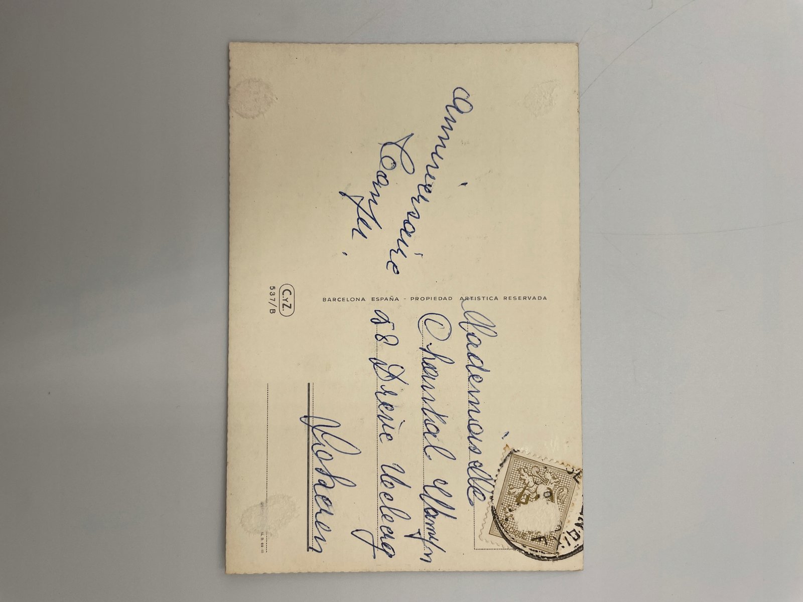 Kartka pocztowa Hiszpania 1950s dziewczynka z bukietem Baró Barcelona