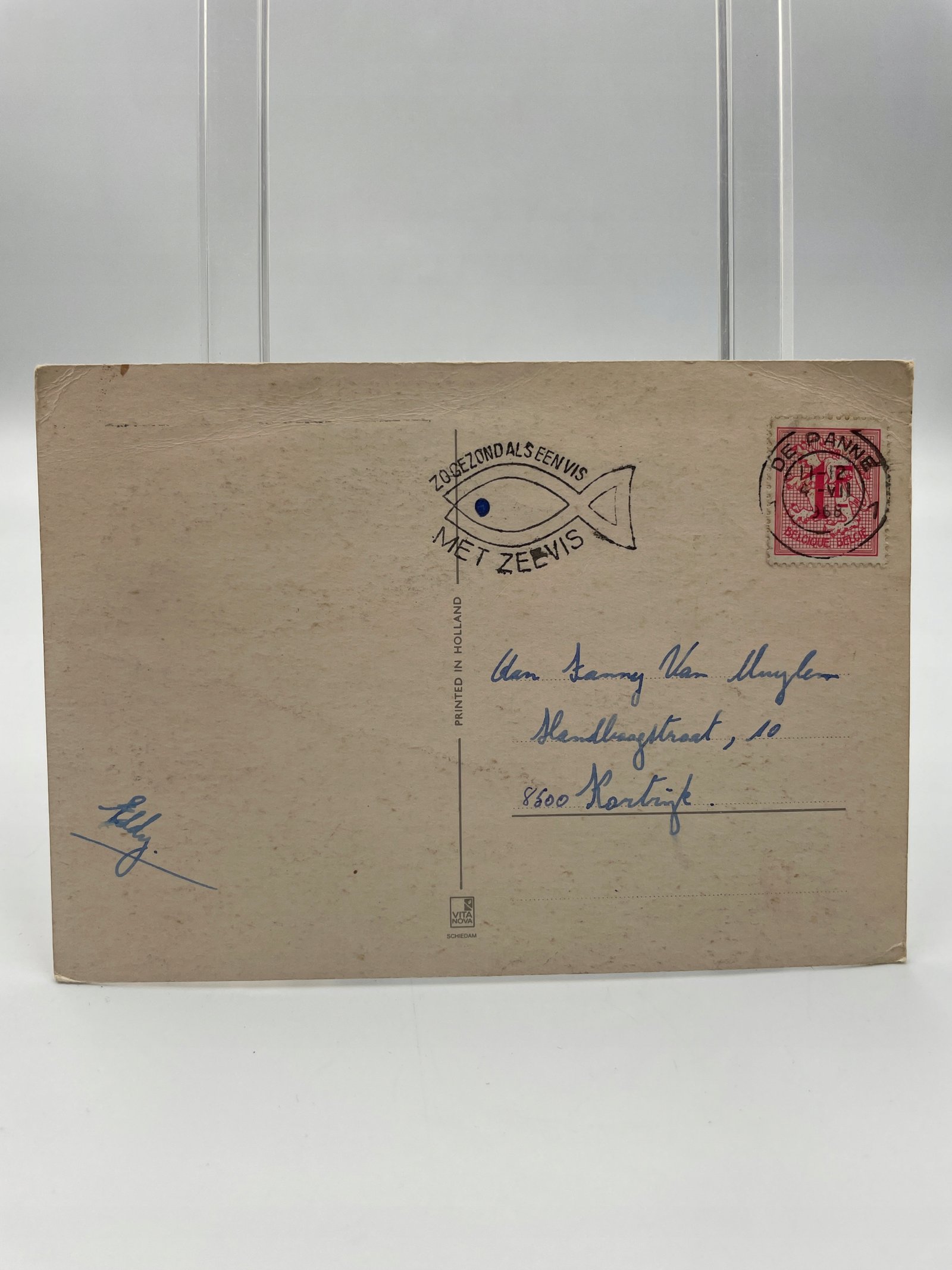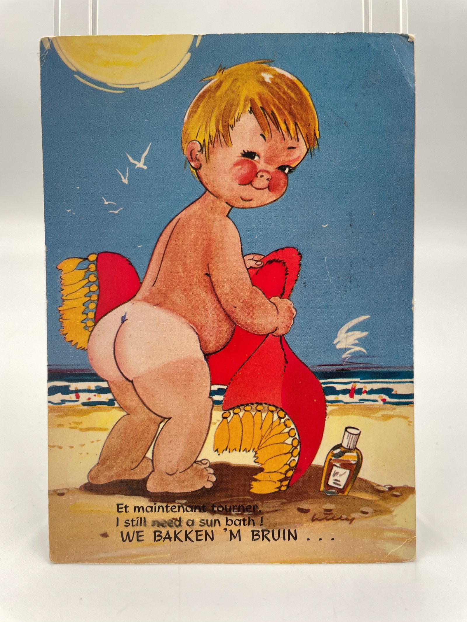 Kartka pocztowa Holandia lata 1968 humorystyczna scena plażowa Met Zeevis