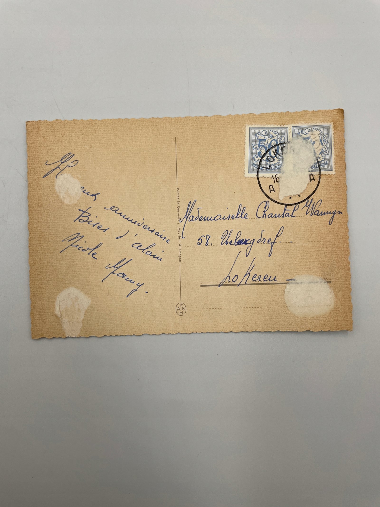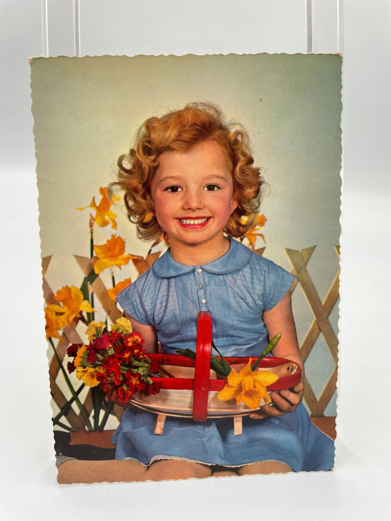 Kartka pocztowa Niemcy 1950s dziewczynka z kwiatami
