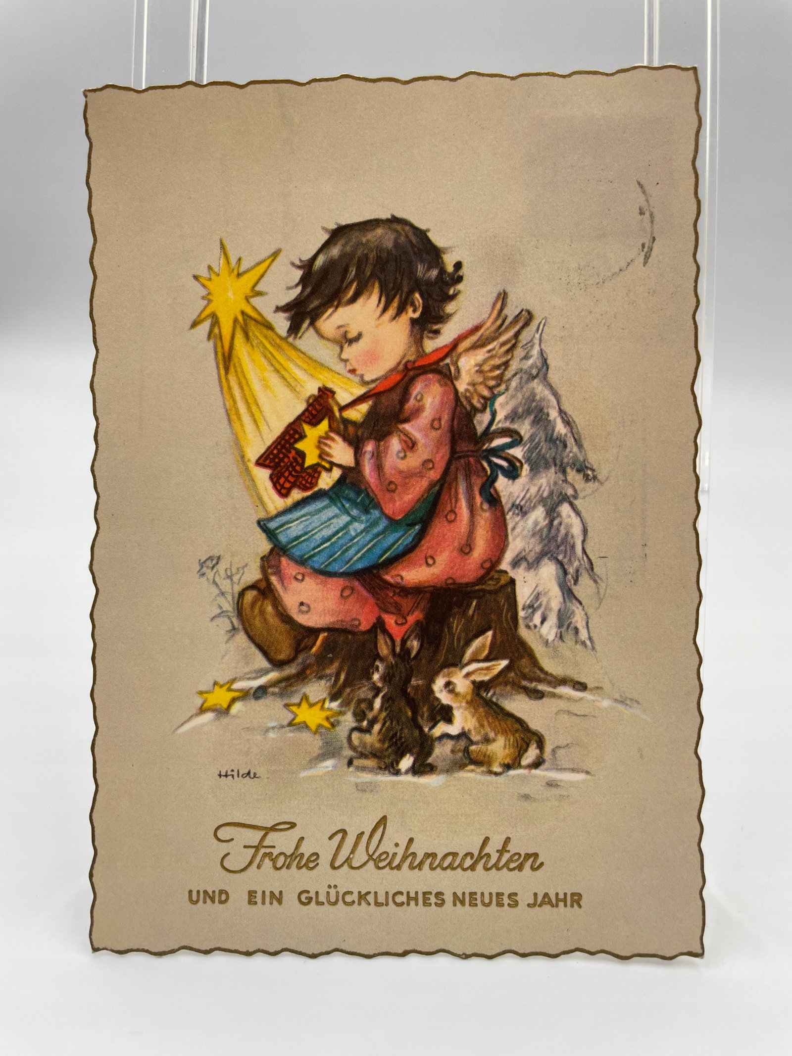 Kartka pocztowa Niemcy 1960 anioł zające Boże Narodzenie Hilde Weihnachten