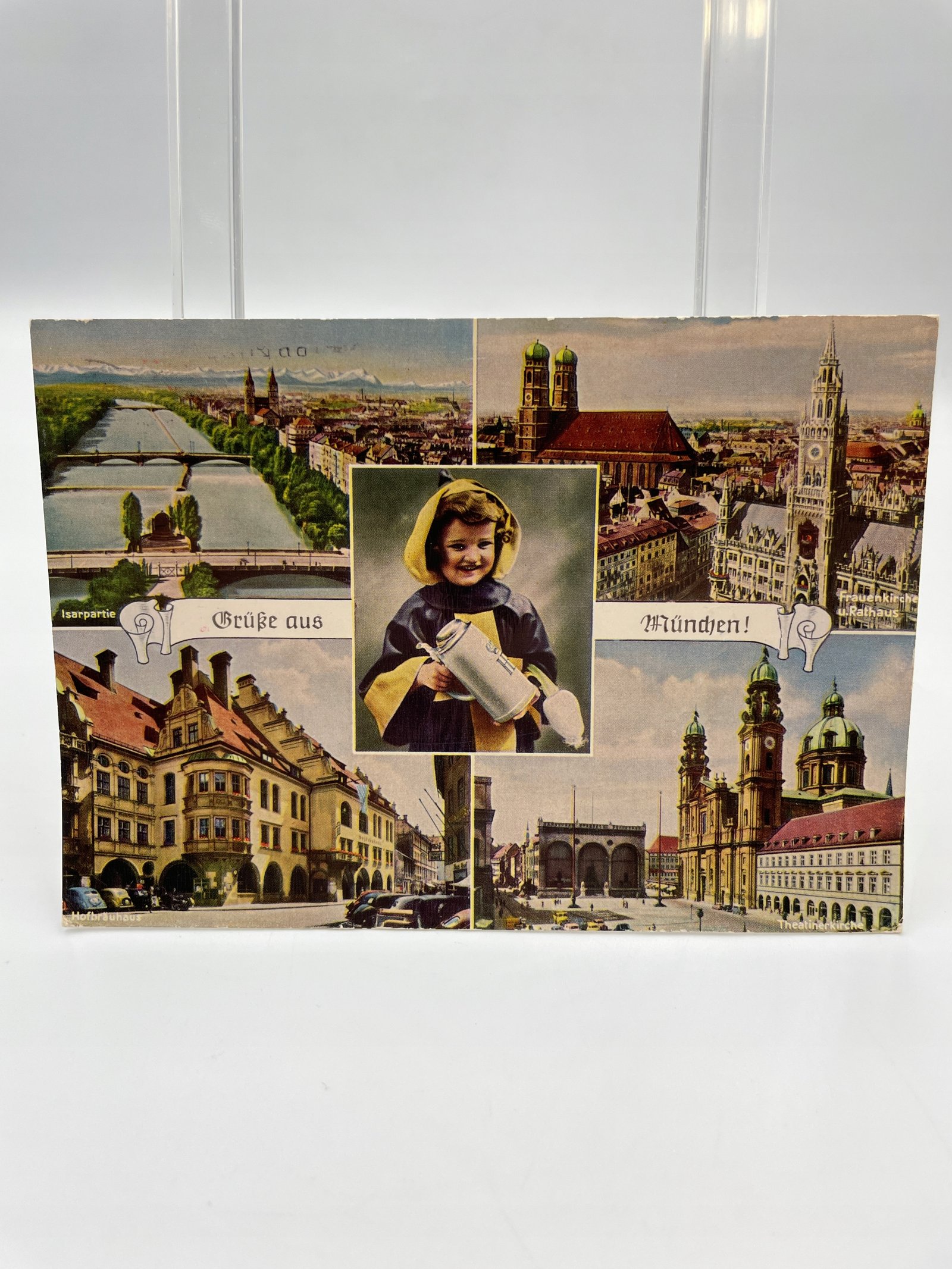 Kartka Niemcy 1963 Monachium kolaż z widokami miasta i dzieckiem