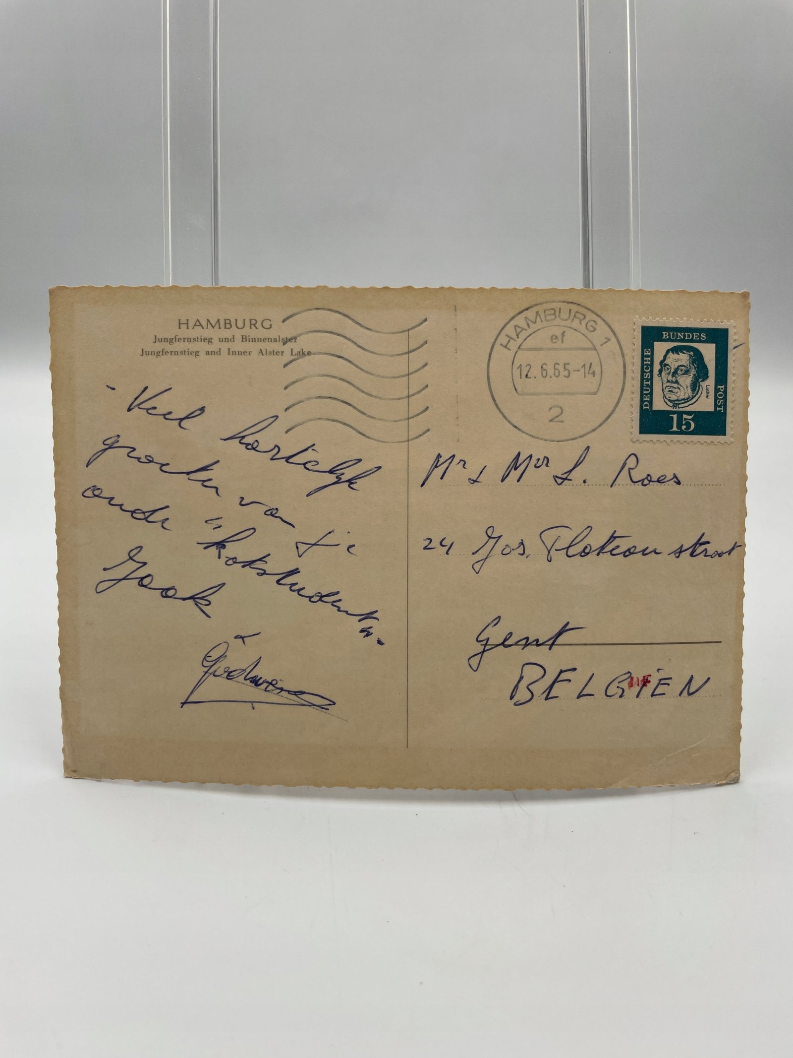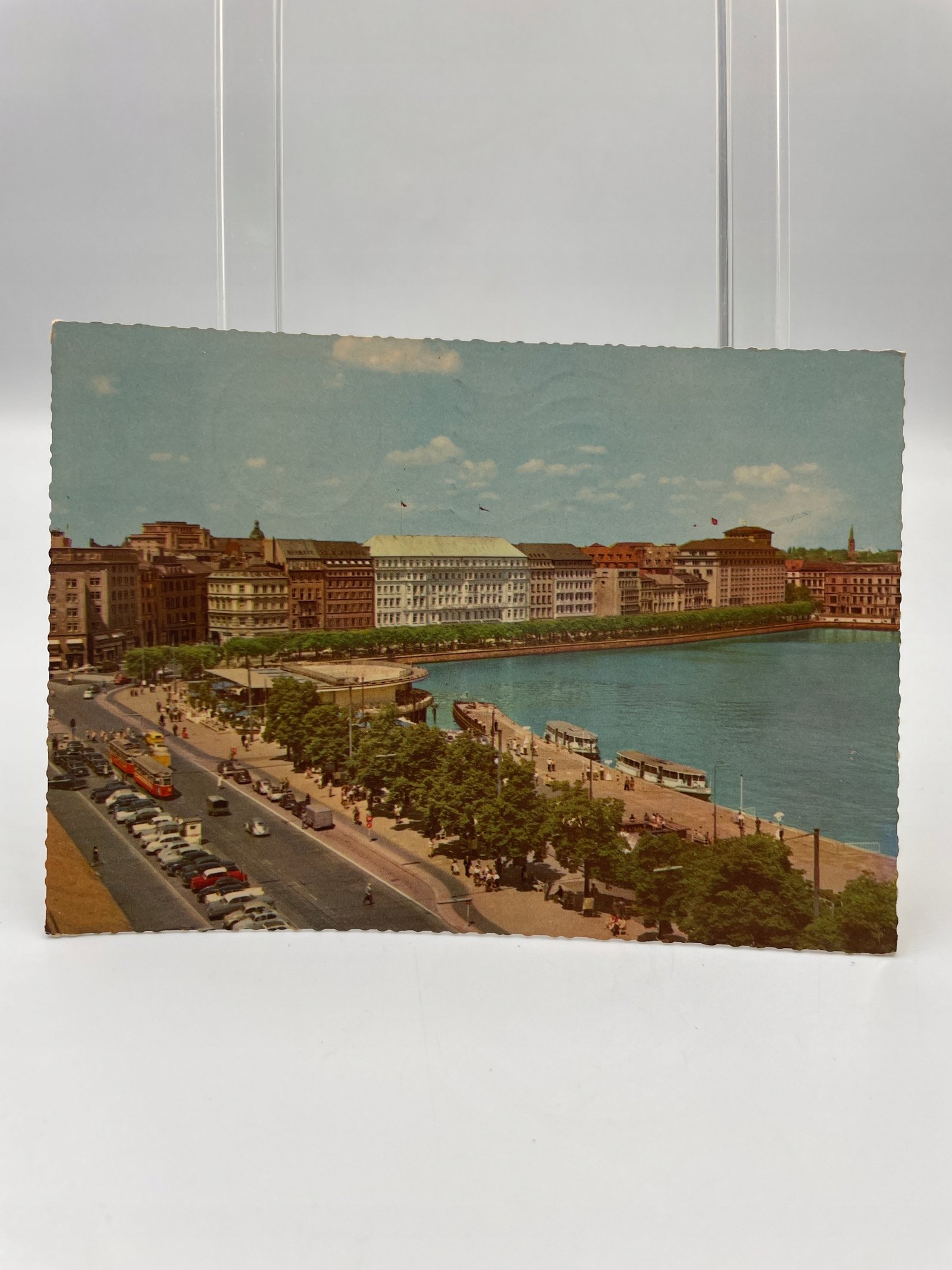 Kartka pocztowa Niemcy 1965 Hamburg promenada tramwaj Jungfernstieg
