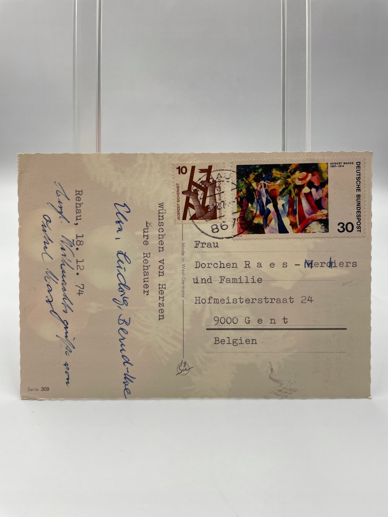 Kartka pocztowa Niemcy 1974 choinka świeca i bombki świąteczne