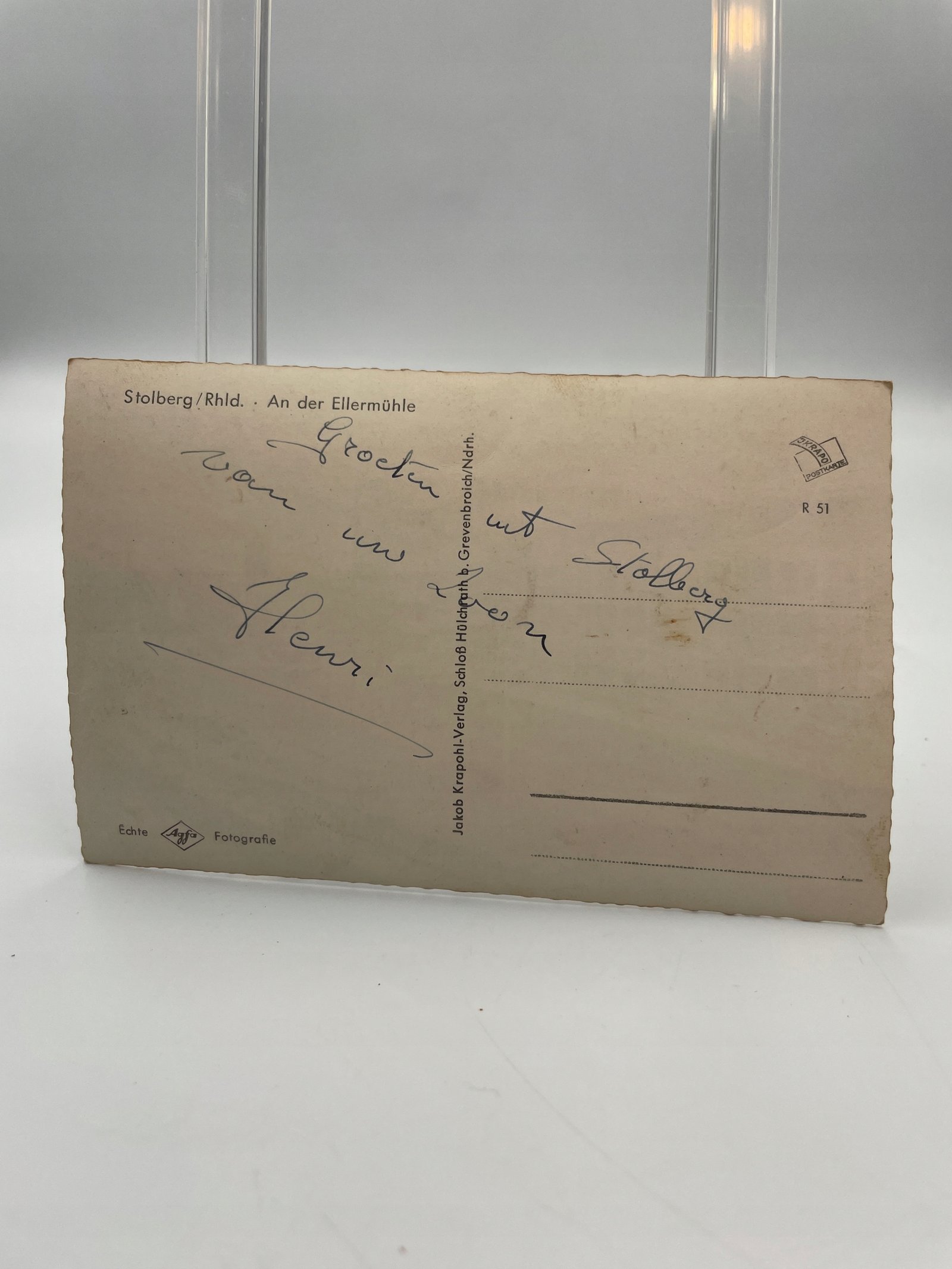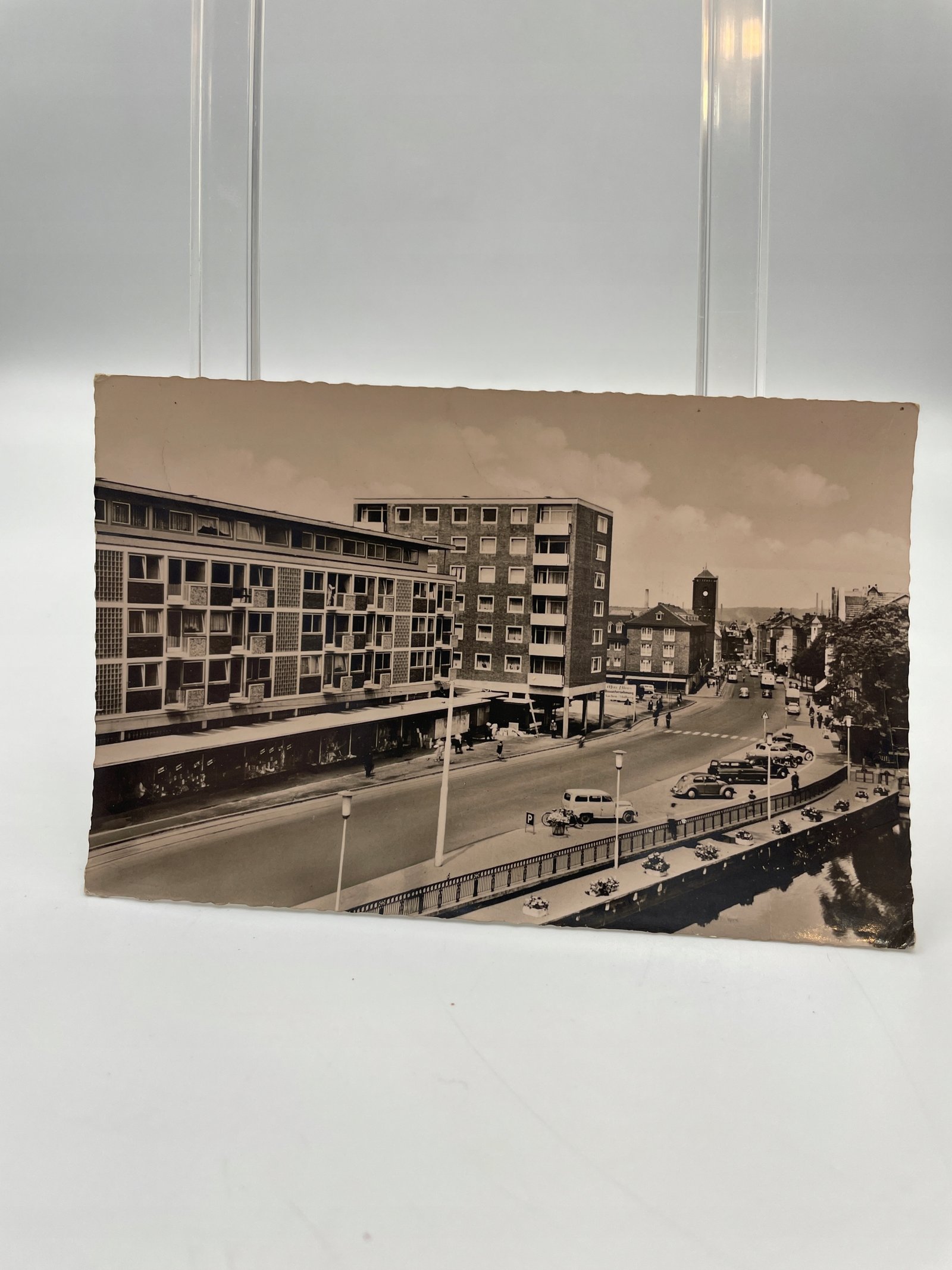Kartka pocztowa Niemcy Stolberg an der Ellermühle lata 1950 budynki i kanał