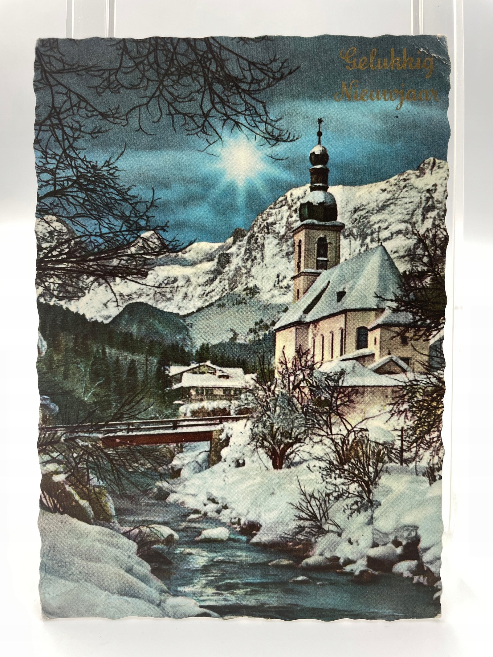 Kartka pocztowa Niemcy zimowy pejzaż z kościołem Glückliches Neujahr