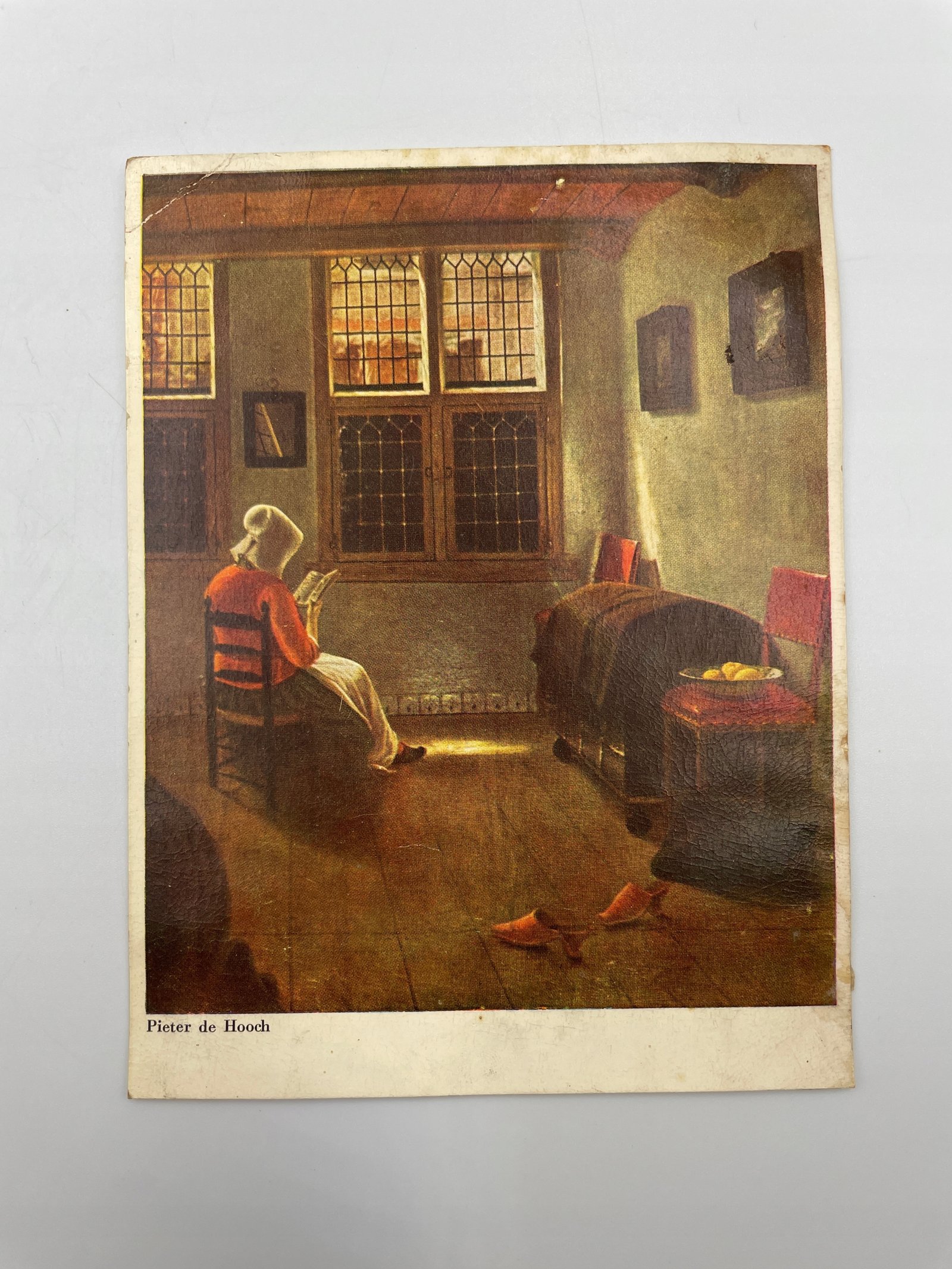 Kartka pocztowa Szwajcaria 1950s Pieter de Hooch wnętrze kobieta
