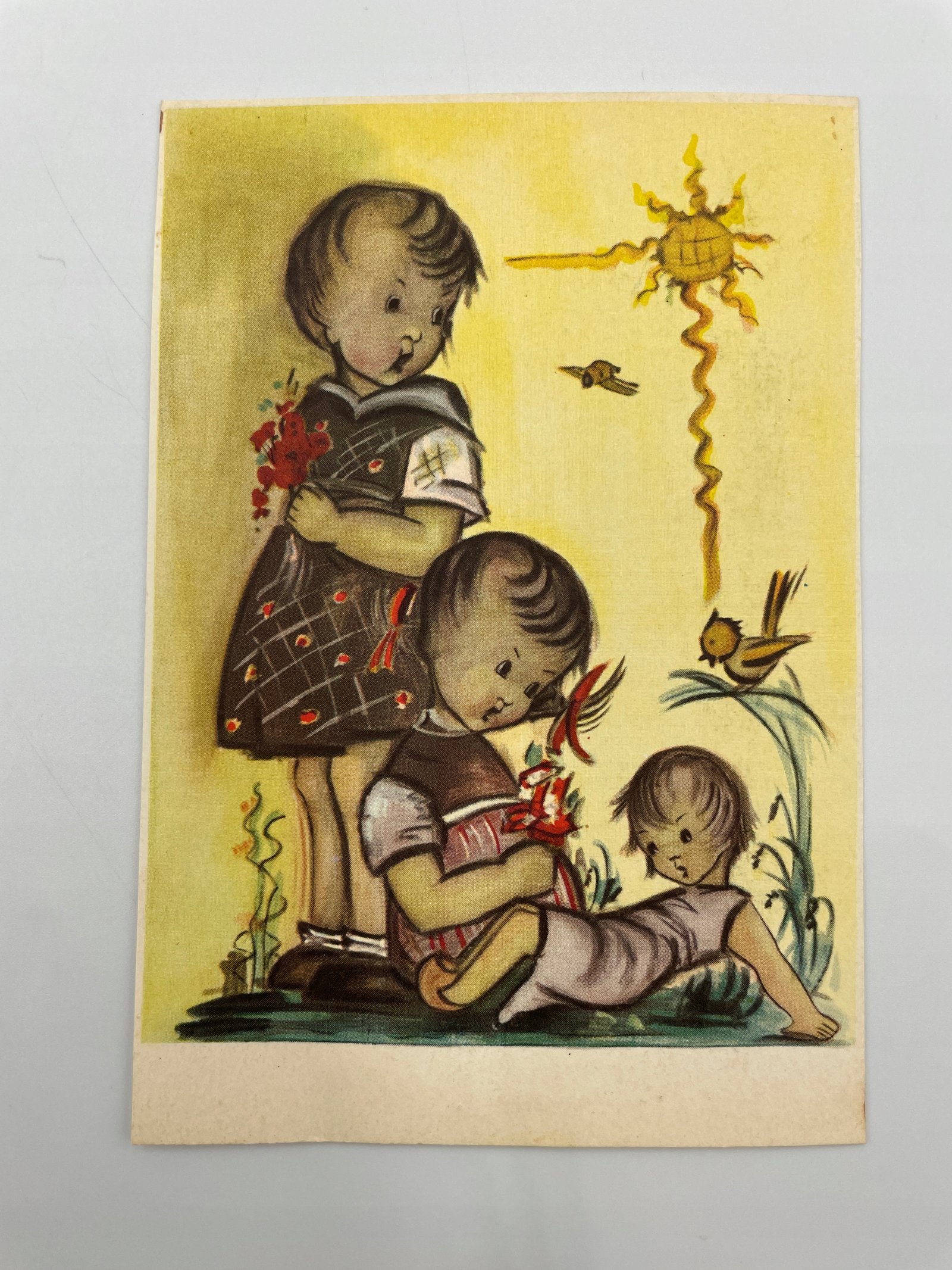 Kartka pocztowa Włochy 1950s dzieci przy straganie Gelukkig Nieuwjaar