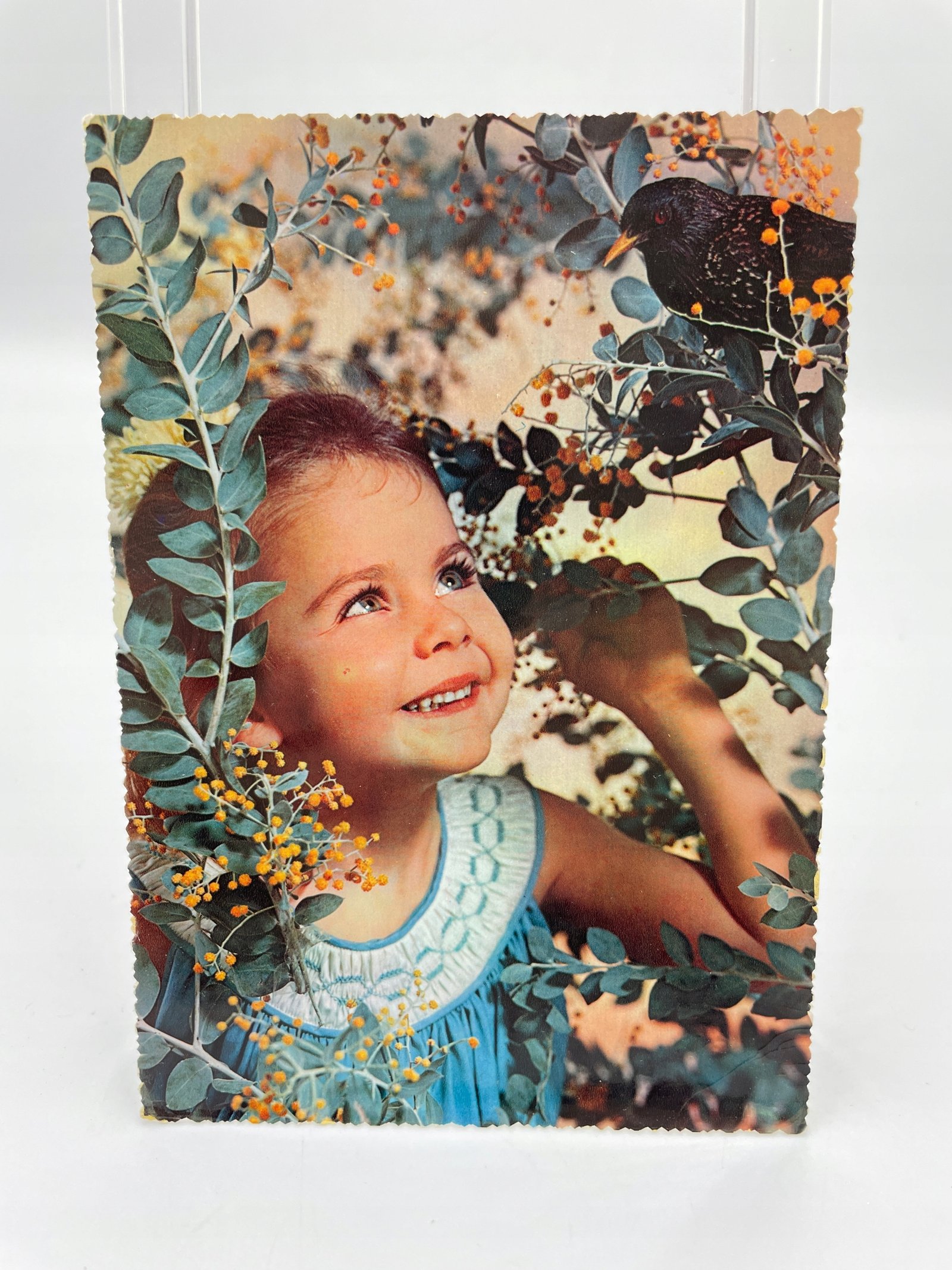 Kartka pocztowa Włochy 1960 dziewczynka i ptaki wśród liści CEAM
