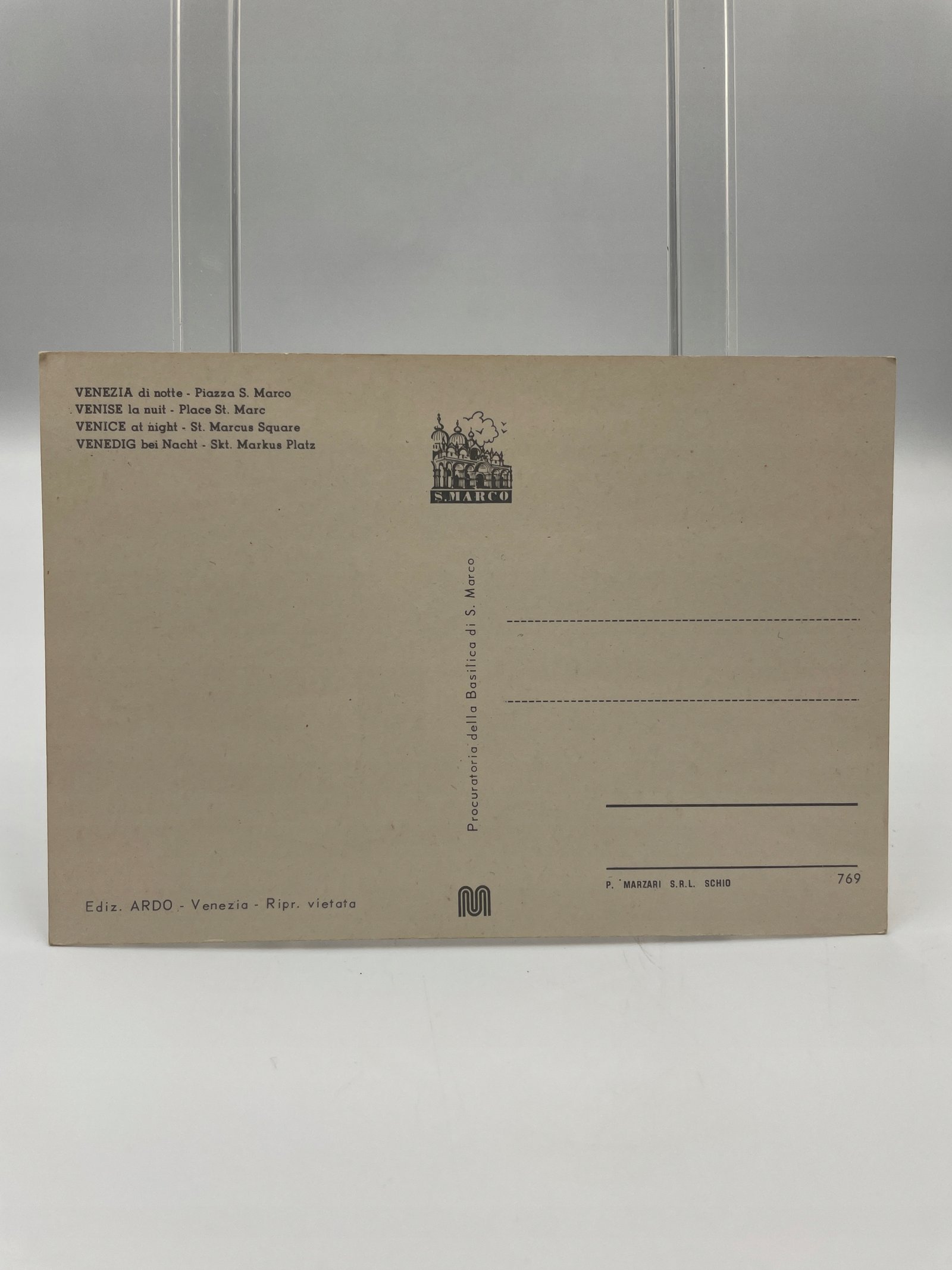 Kartka pocztowa Włochy 1960s Wenecja Plac św. Marka wieczorem ARDO