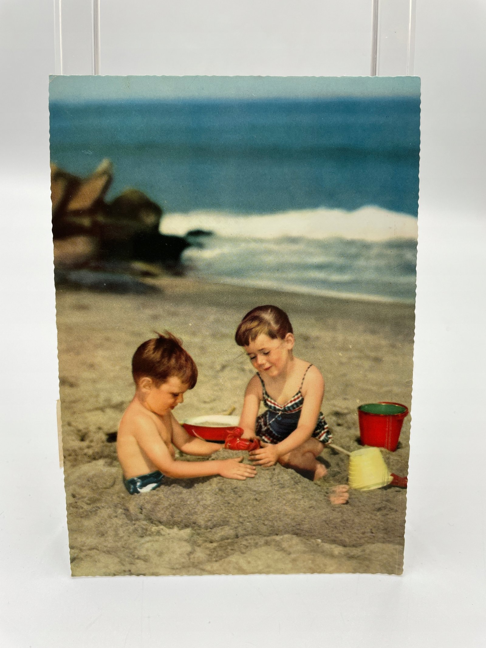 Kartka Włochy 1979 dzieci na plaży z zabawkami Stampa