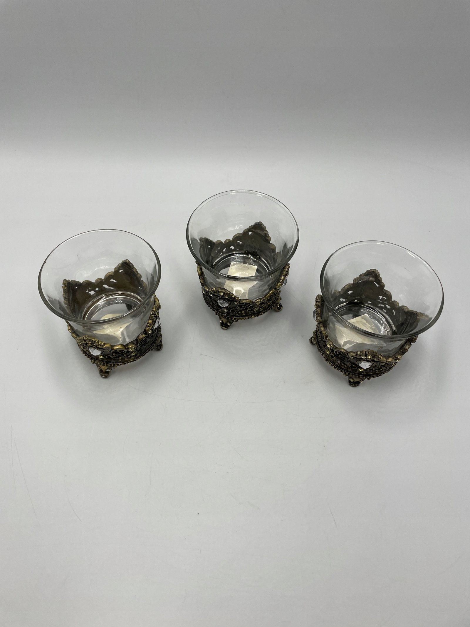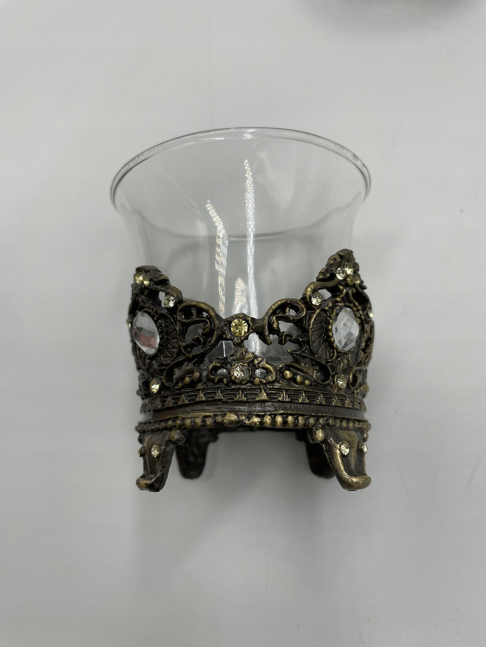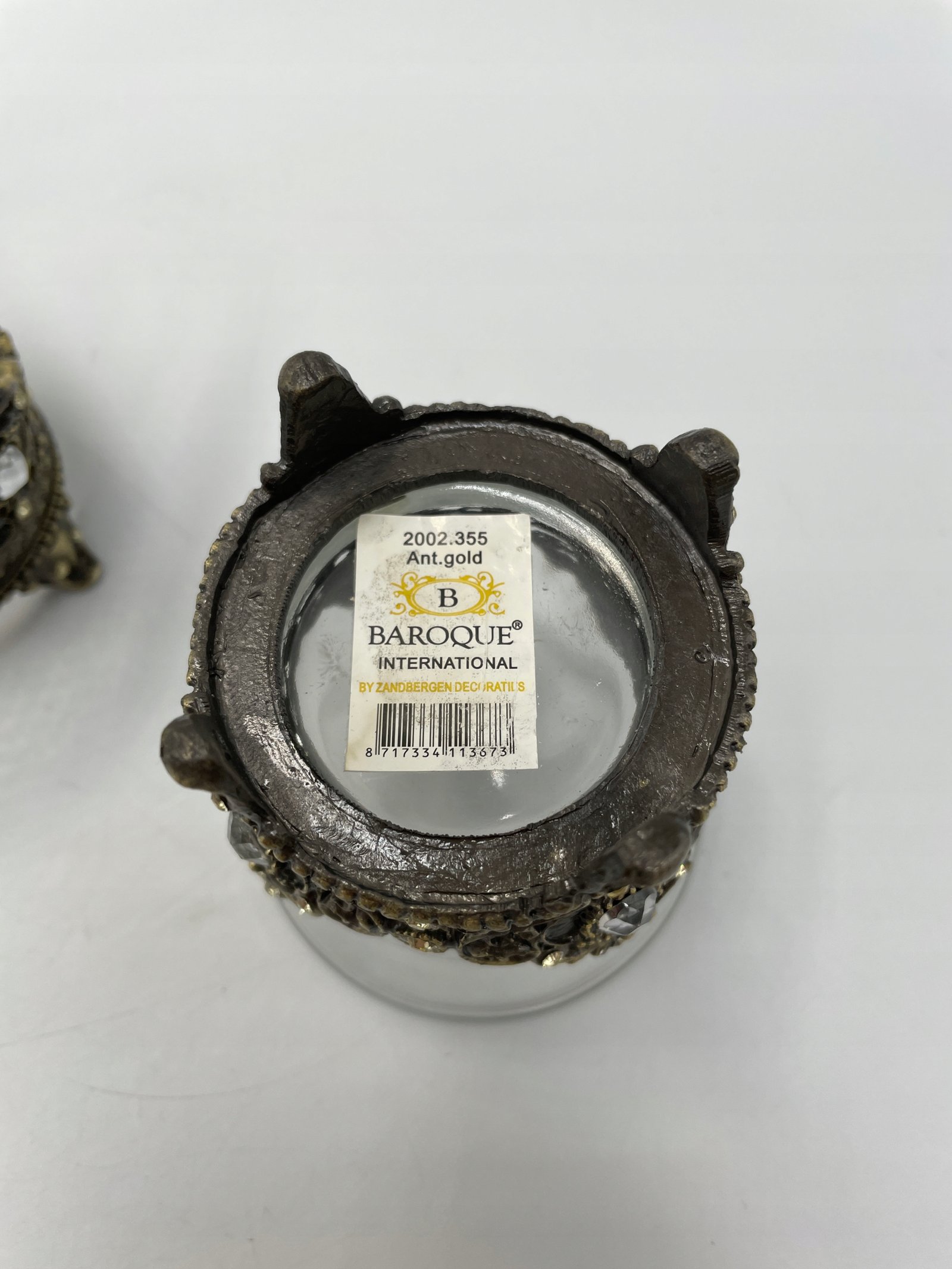 Świeczniki 3 szt Baroque International Ant.gold barok metal szkło z kamieniami