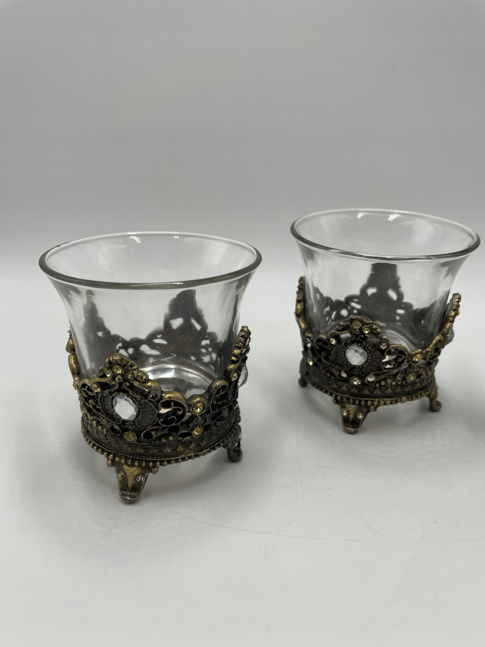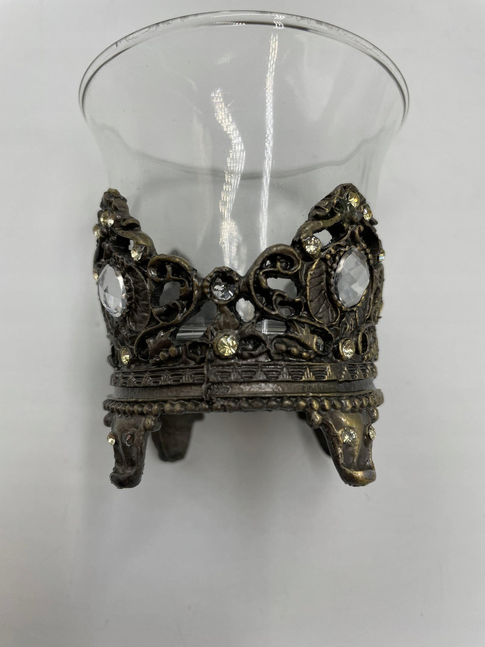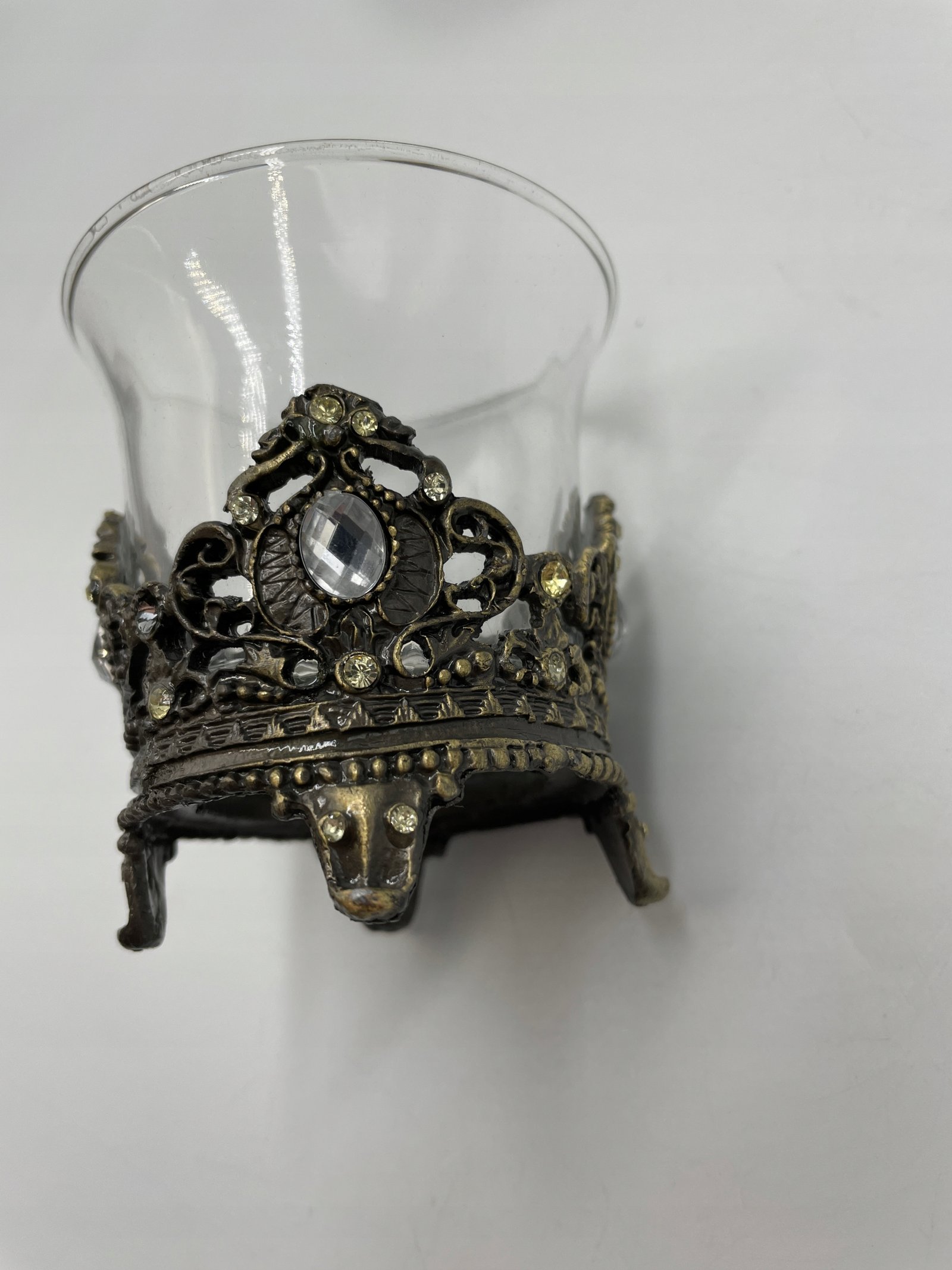 Świeczniki 3 szt Baroque International Ant.gold barok metal szkło z kamieniami