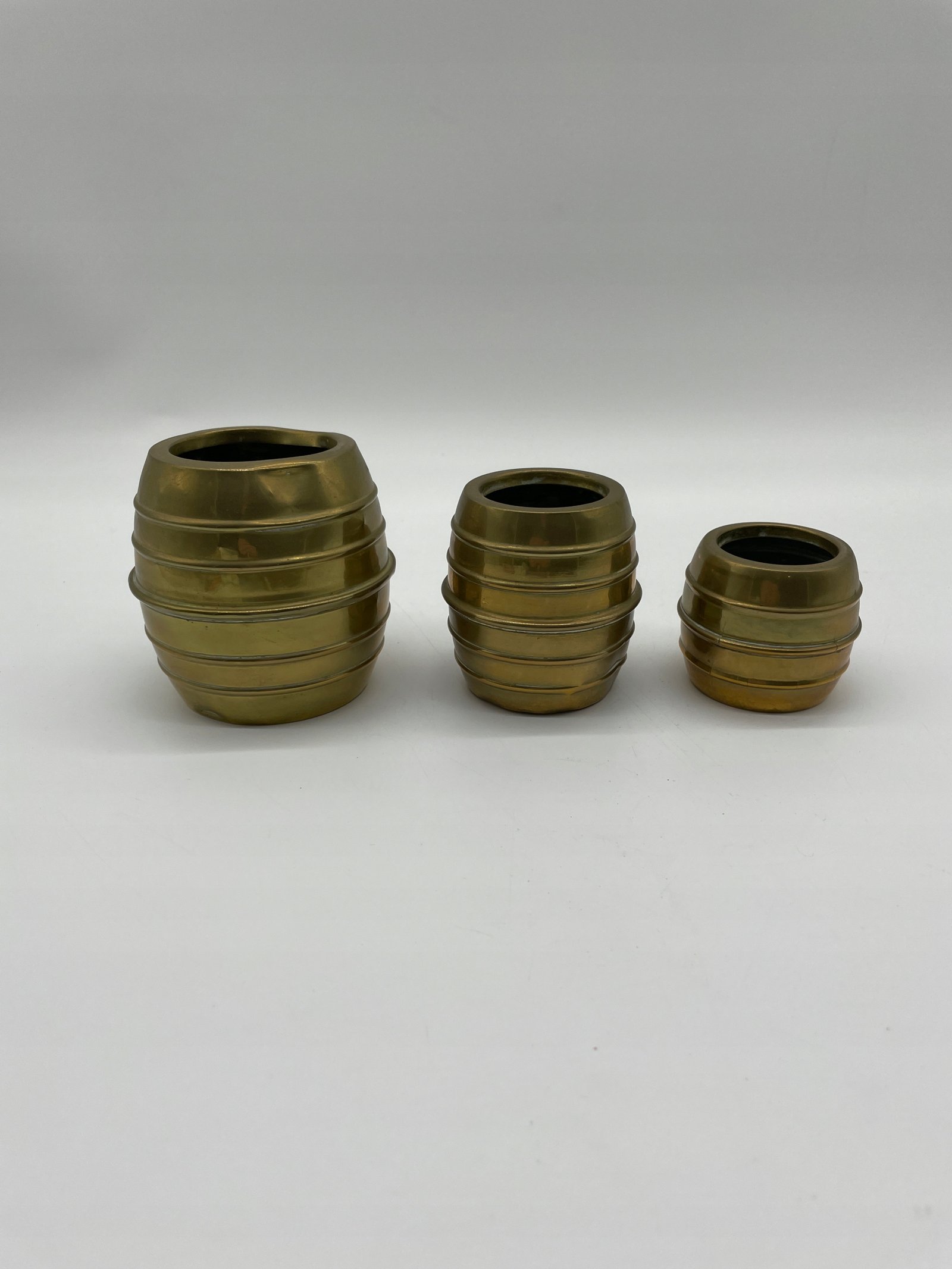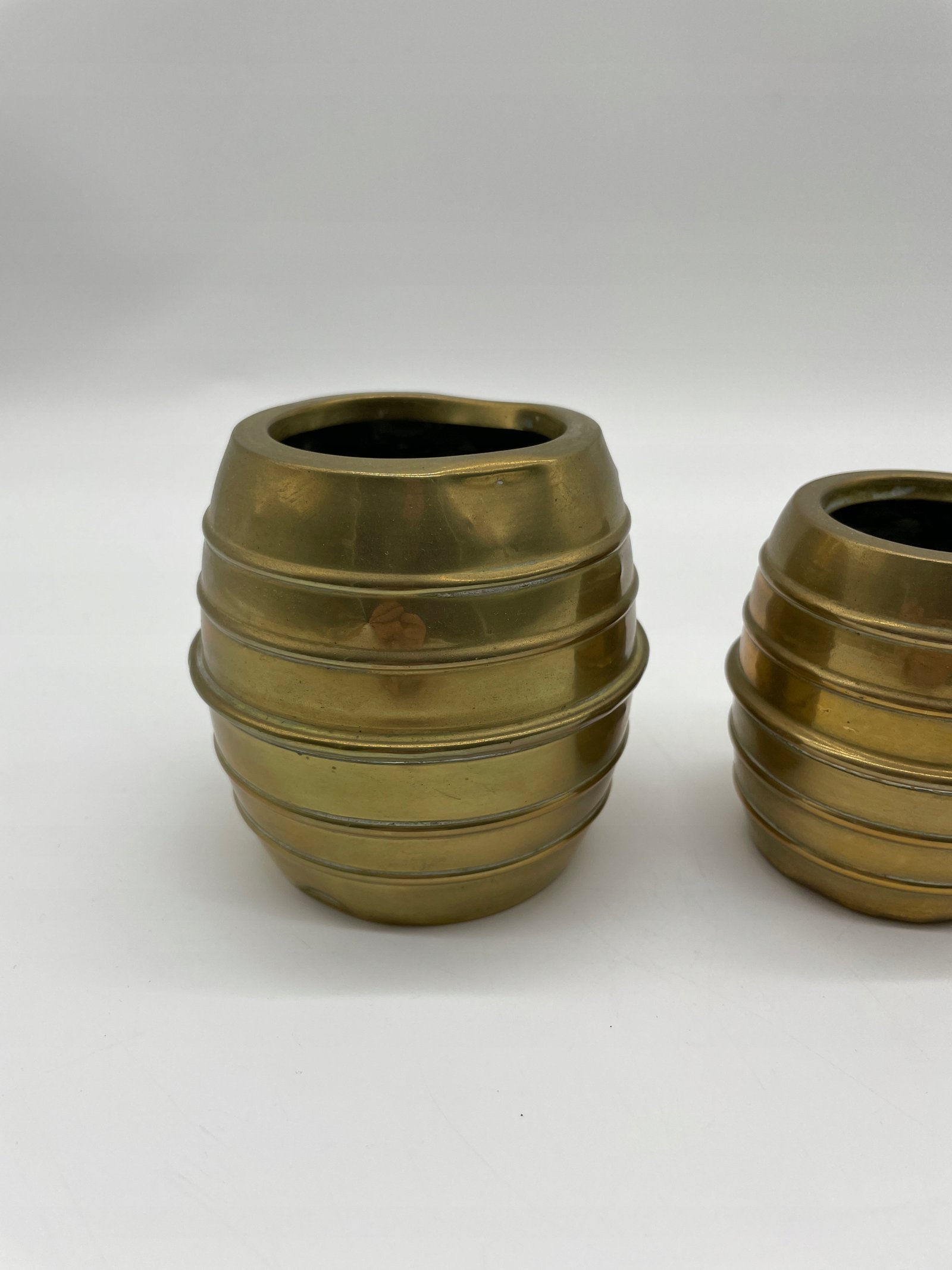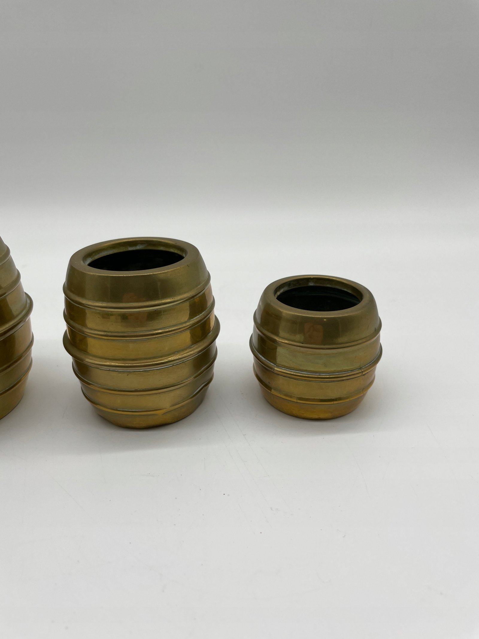 Komplet mosiężnych wazoników Belgia lata 60. w formie beczułek