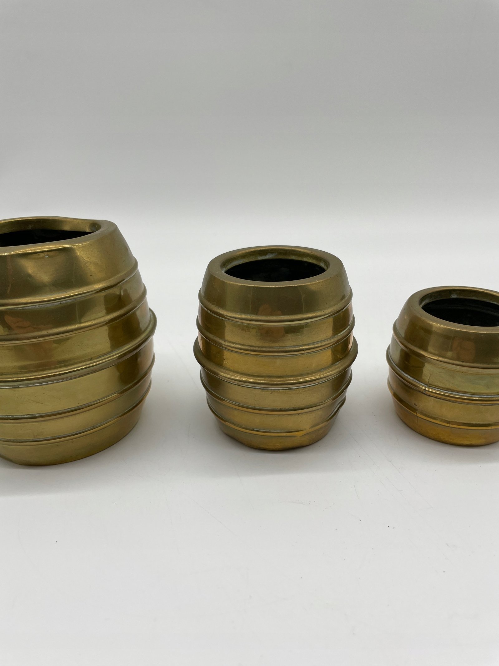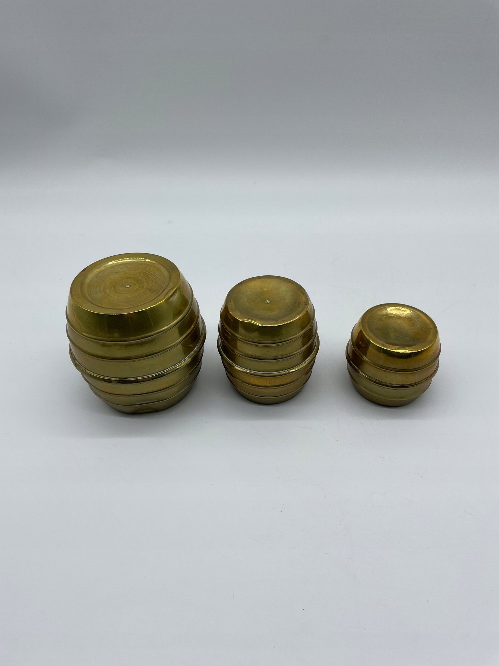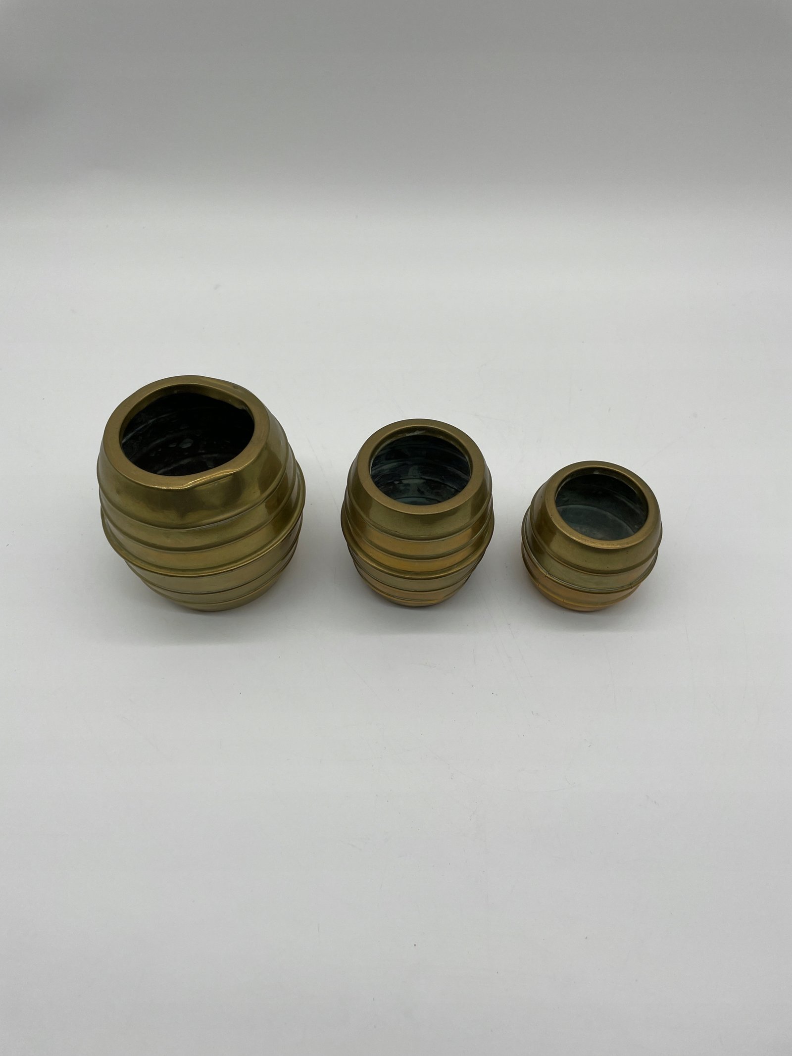 Komplet mosiężnych wazoników Belgia lata 60. w formie beczułek