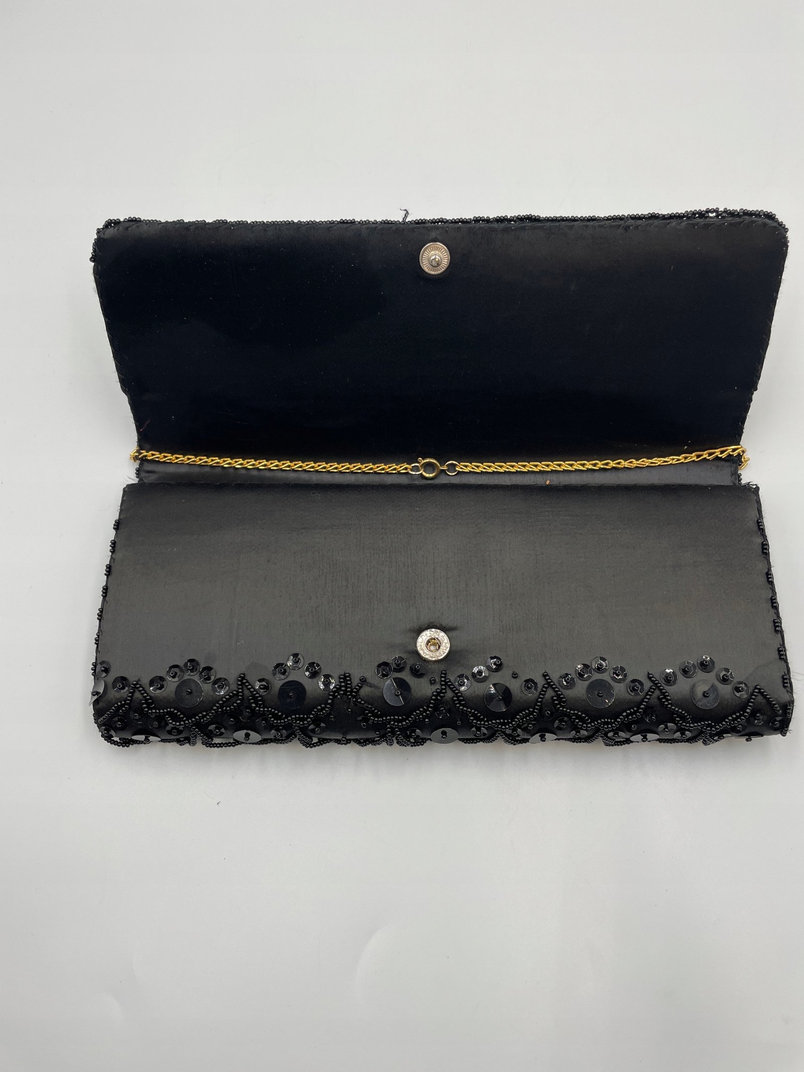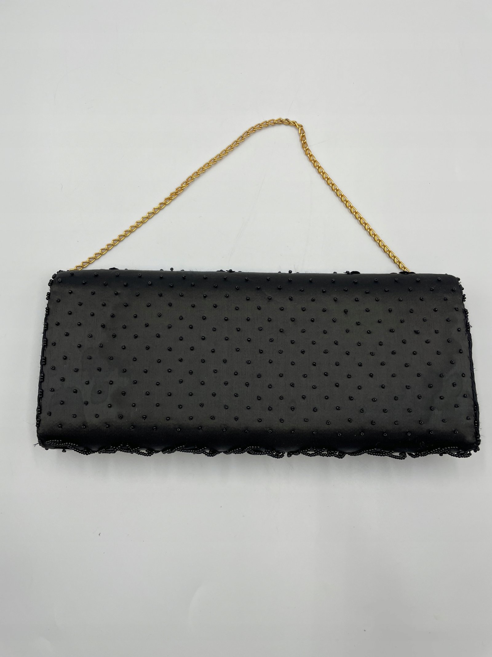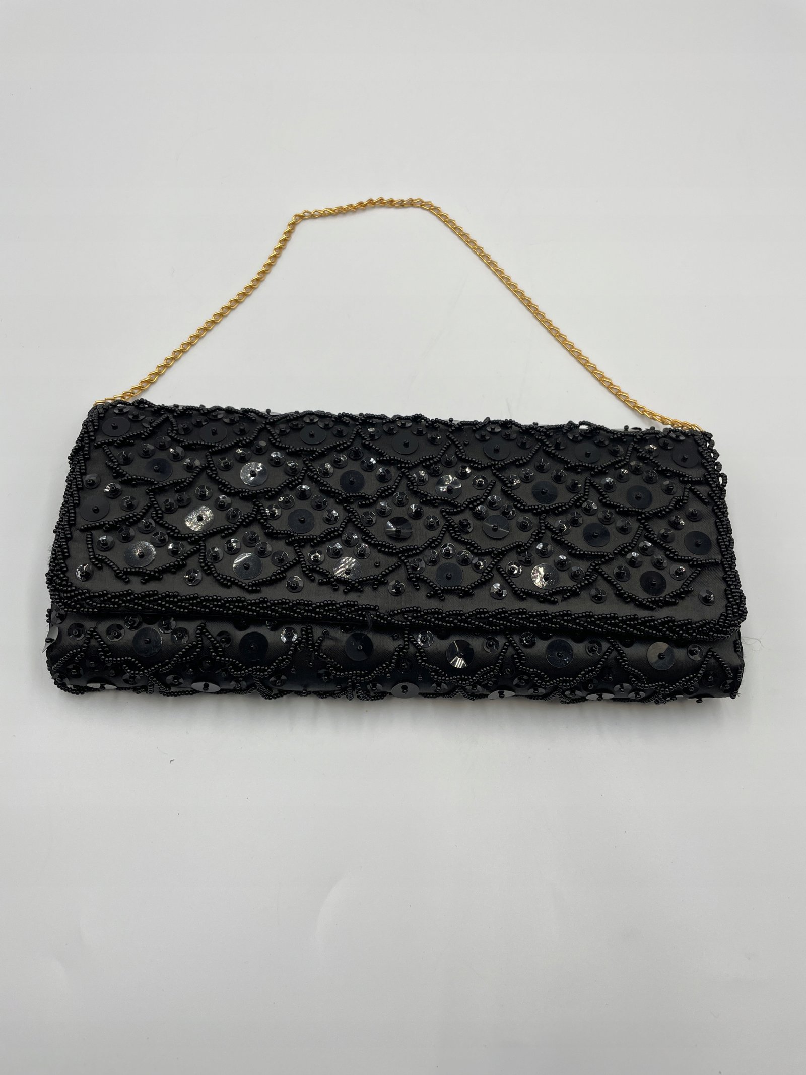 Kopertowka Hongkong 24,5×12 cm czarna tkanina koraliki cekiny 1960–1980