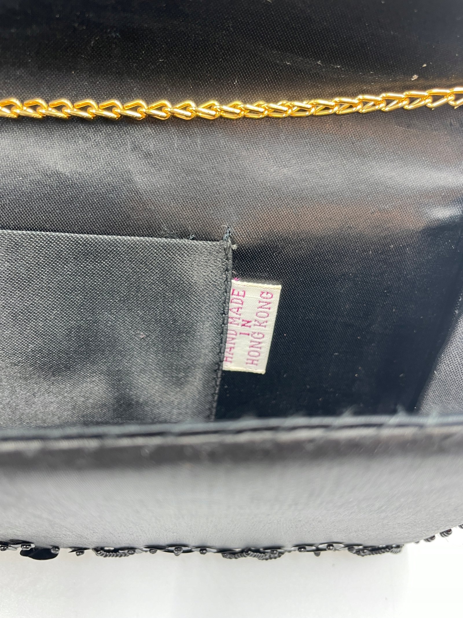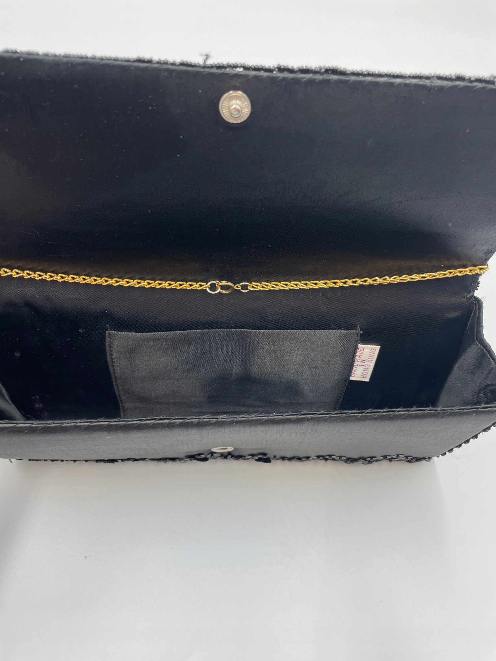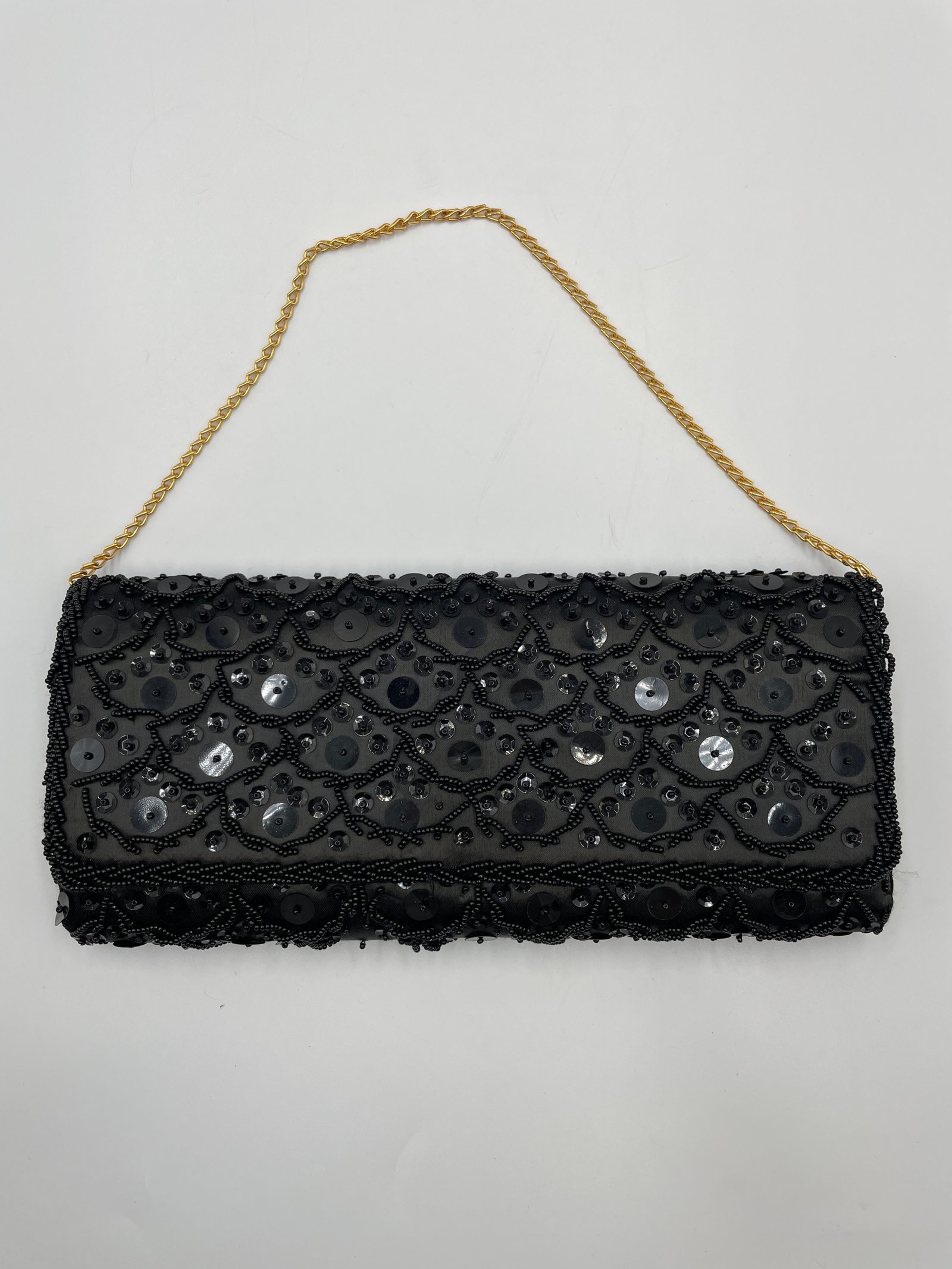 Kopertowka Hongkong 24,5×12 cm czarna tkanina koraliki cekiny 1960–1980