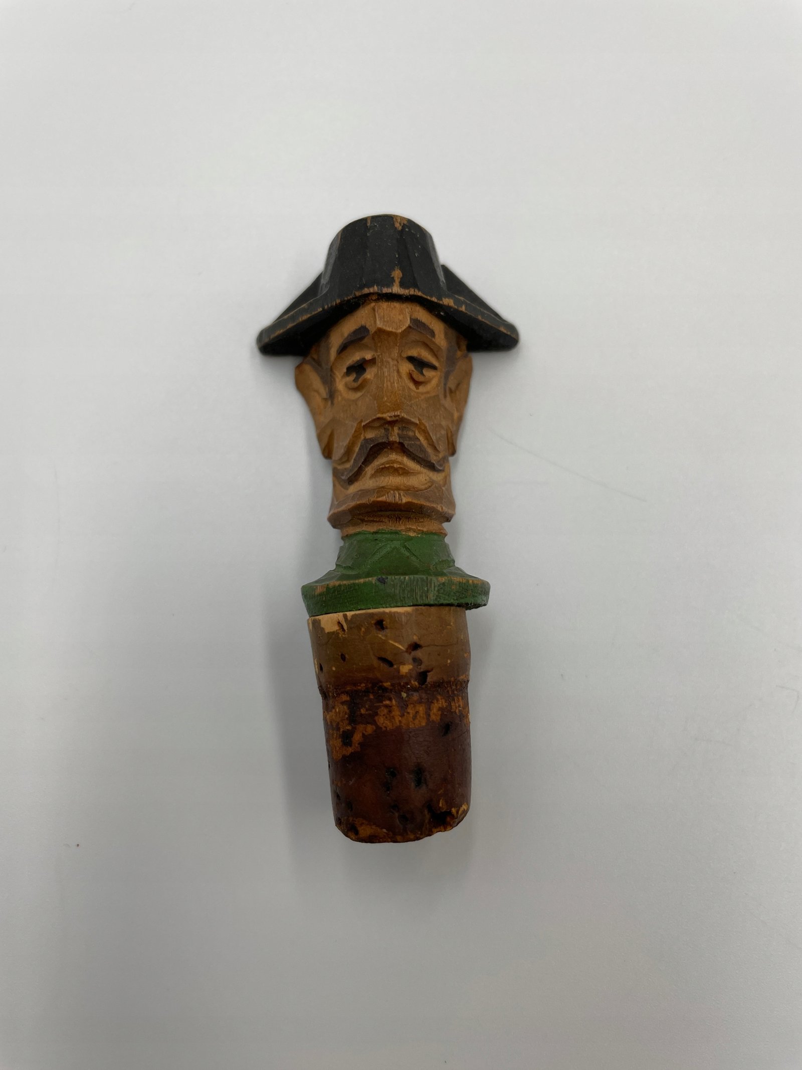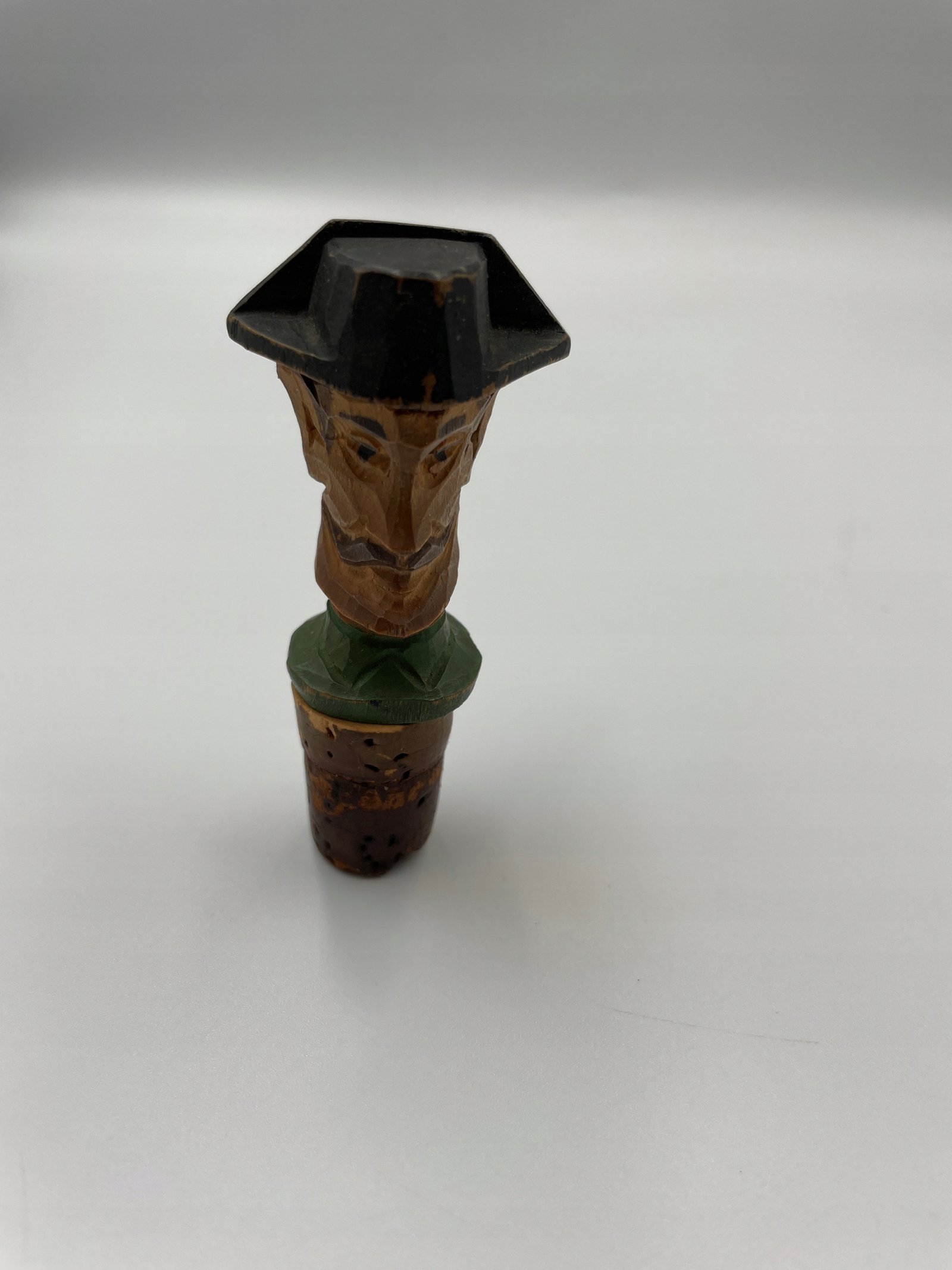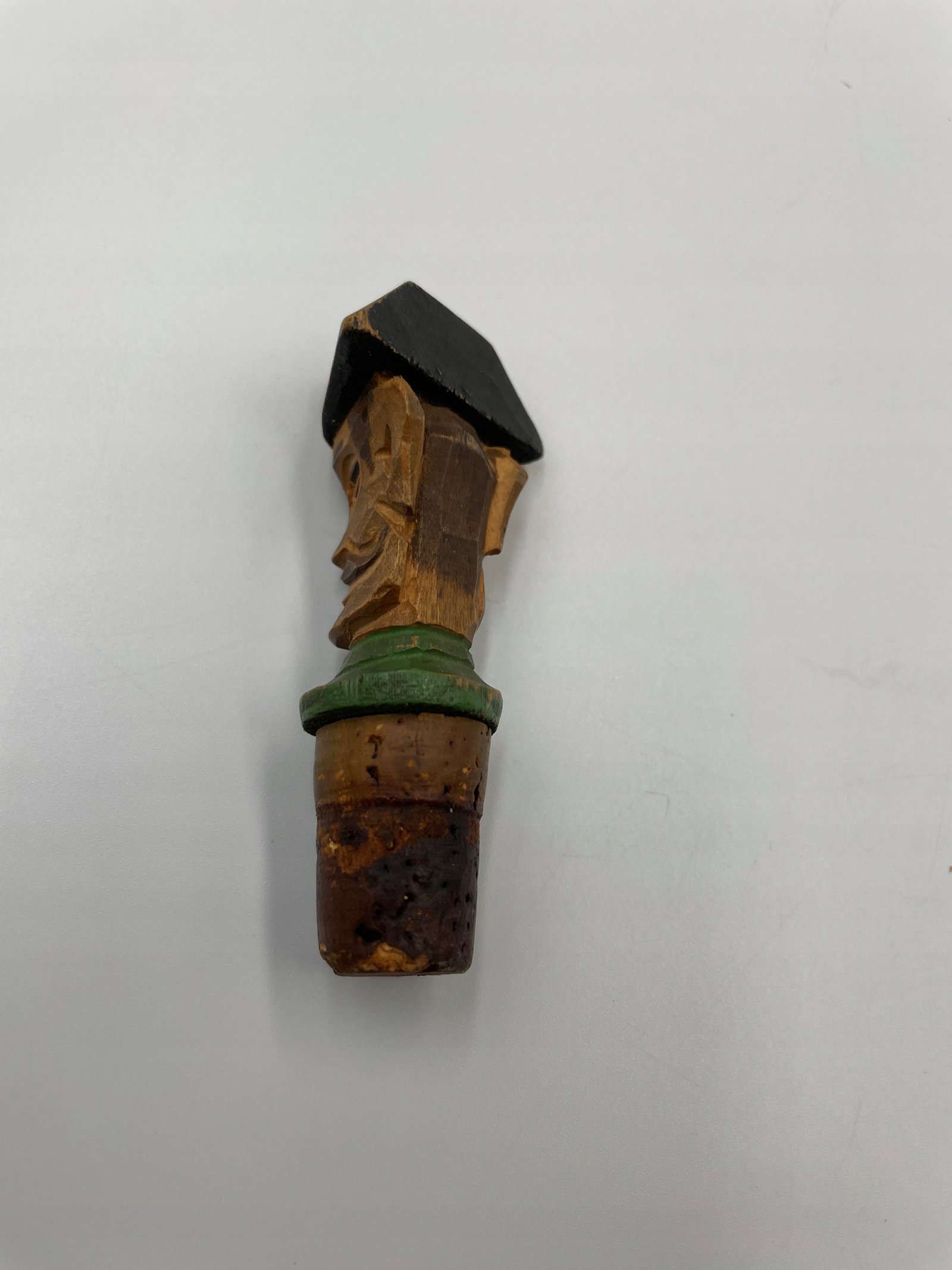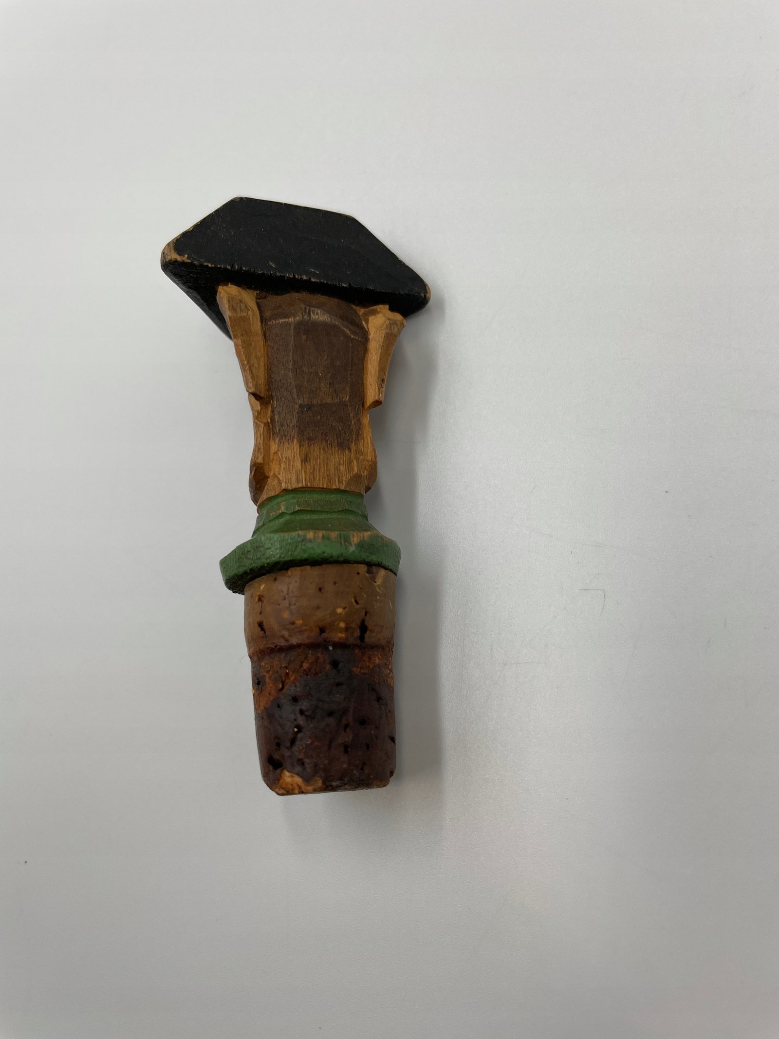 drewno rzeźbione i malowane, korek naturalny, długość 8 cm, szerokość 3,5 cm, Niemcy