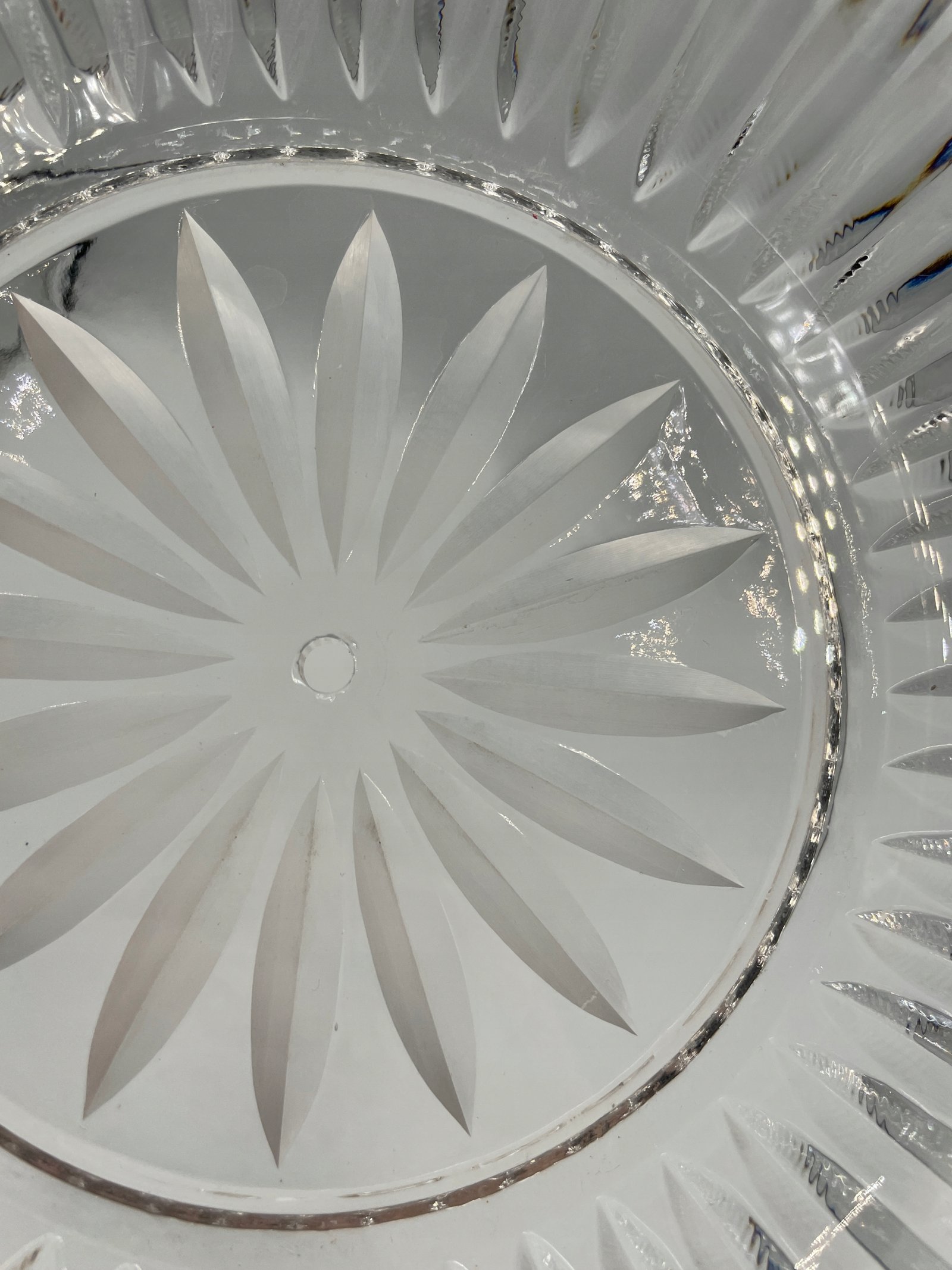 Opis przedmiotu: Elegancka kryształowa misa o klasycznym wzorze, wykonana z wysokiej jakości szkła kryształowego z zawartością 18% tlenku ołowiu. Misa posiada oryginalną naklejkę producenta „Cristall Garanti”, co potwierdza jej autentyczność i wysoką jakość wykonania. Ciekawym elementem jest obecność otworu w centrum misy, który może pełnić funkcję dekoracyjną lub praktyczną.
