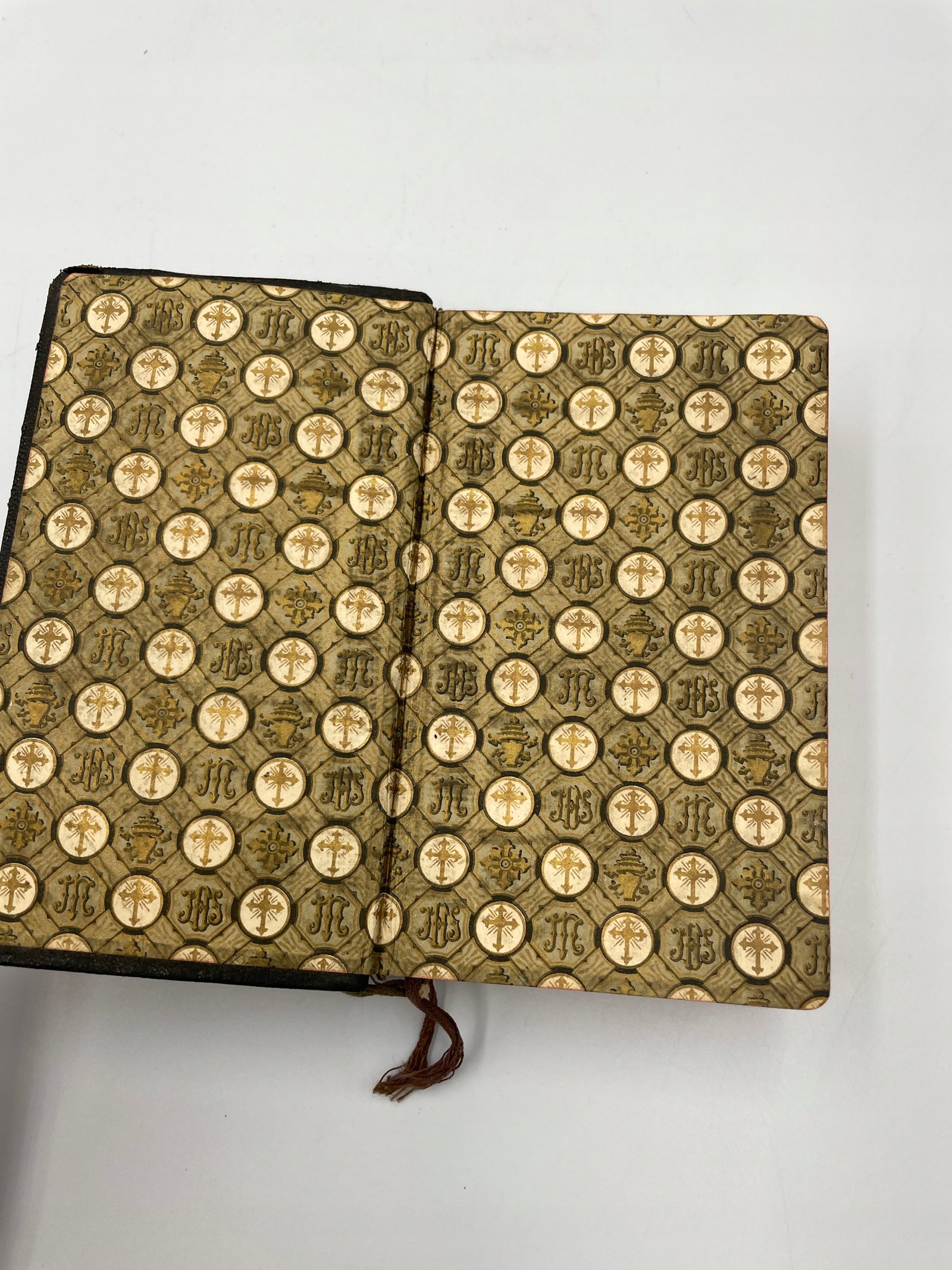 Okładka z tłoczonej ciemnej skóry, z dekoracją na grzbiecie. Wymiary: 15×9×4 cm.