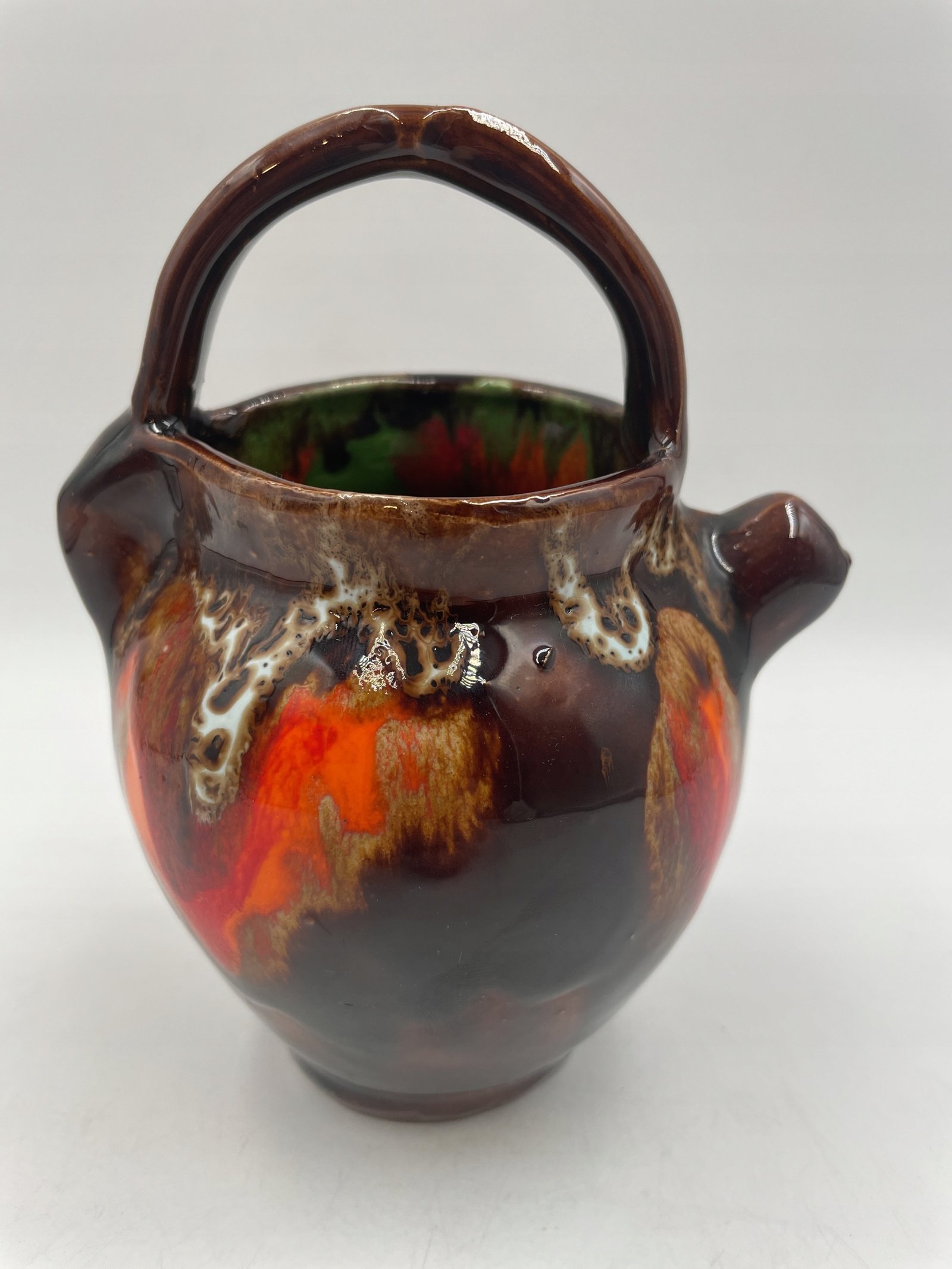 Dzbanek ceramiczny z uchwytem wielobarwny vintage
