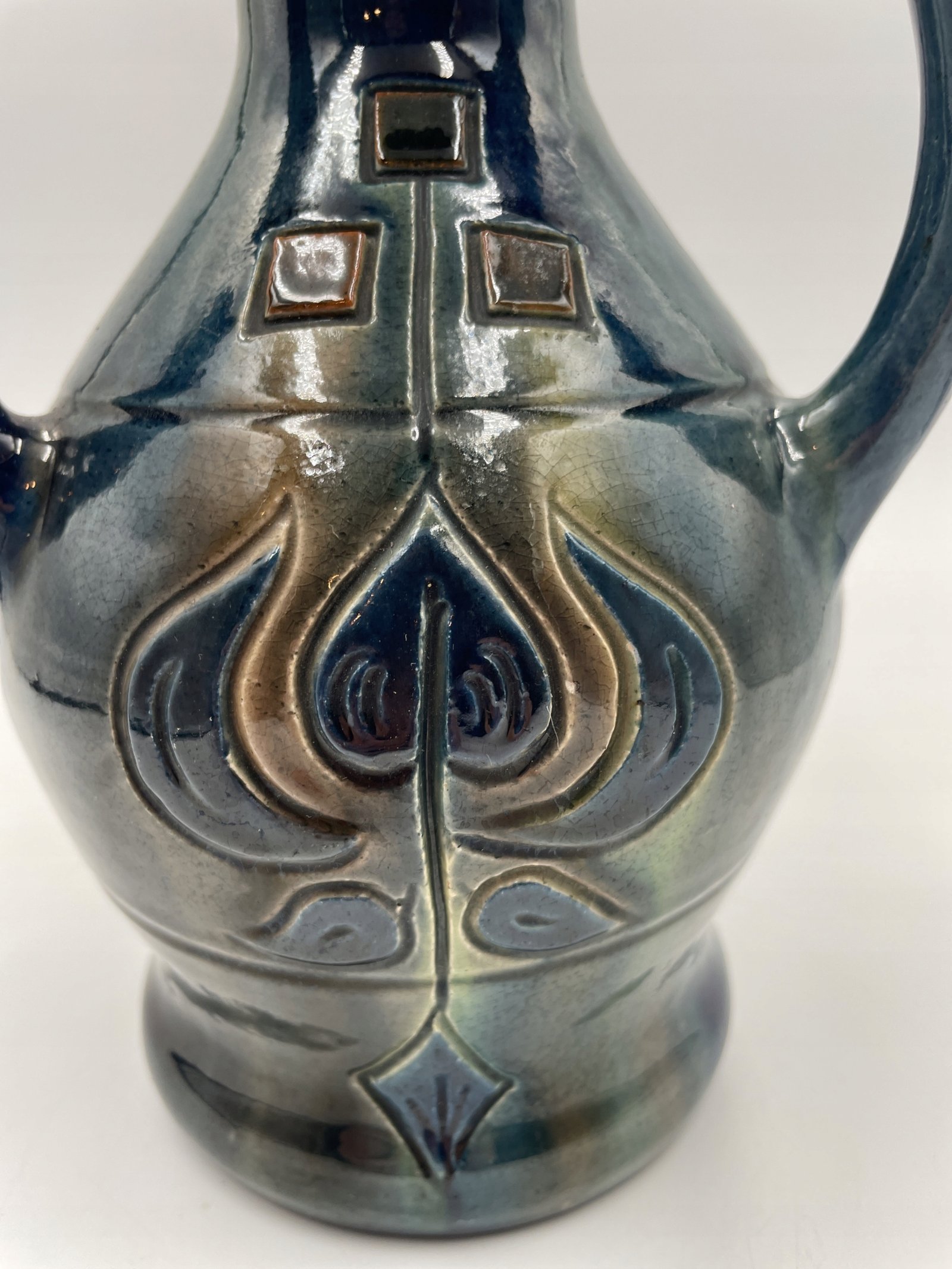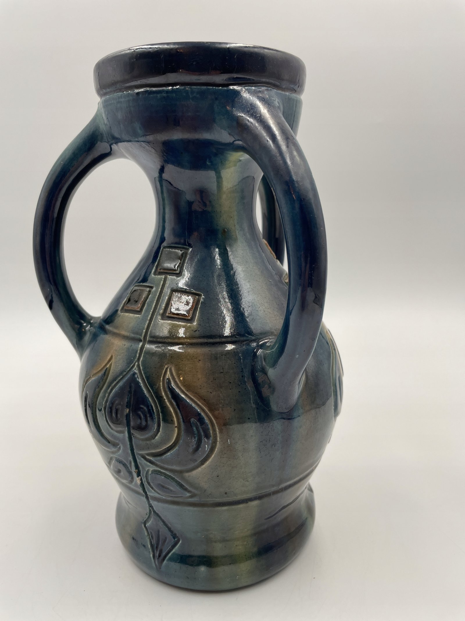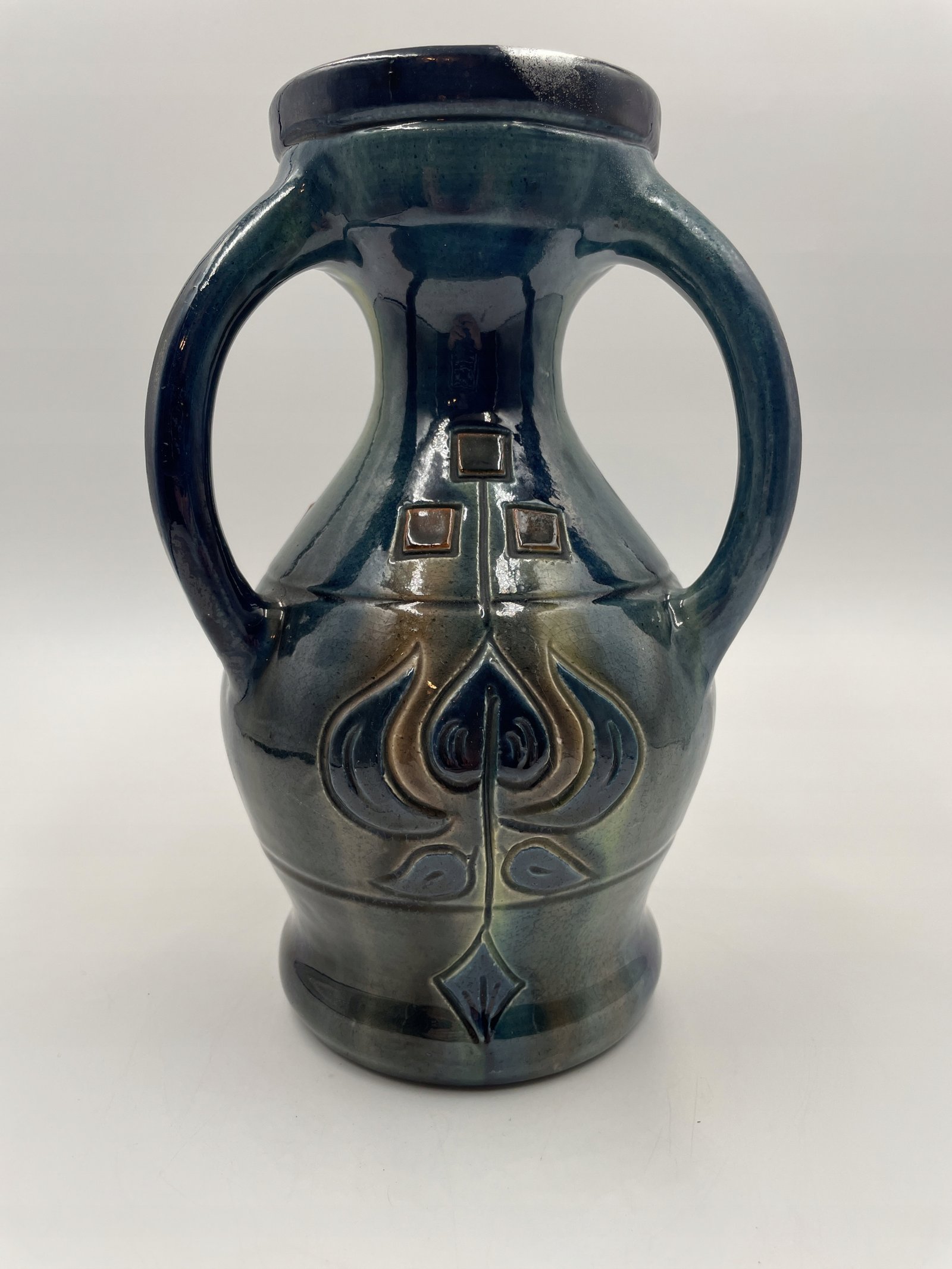 Arts & Crafts Pottery Vase Belgium Flemish Flambe 3 Handled