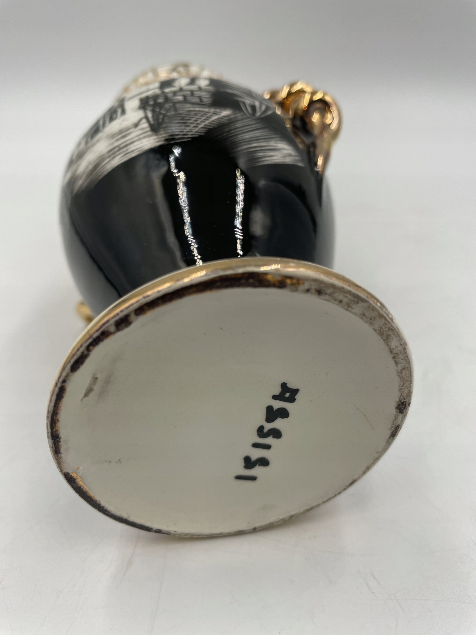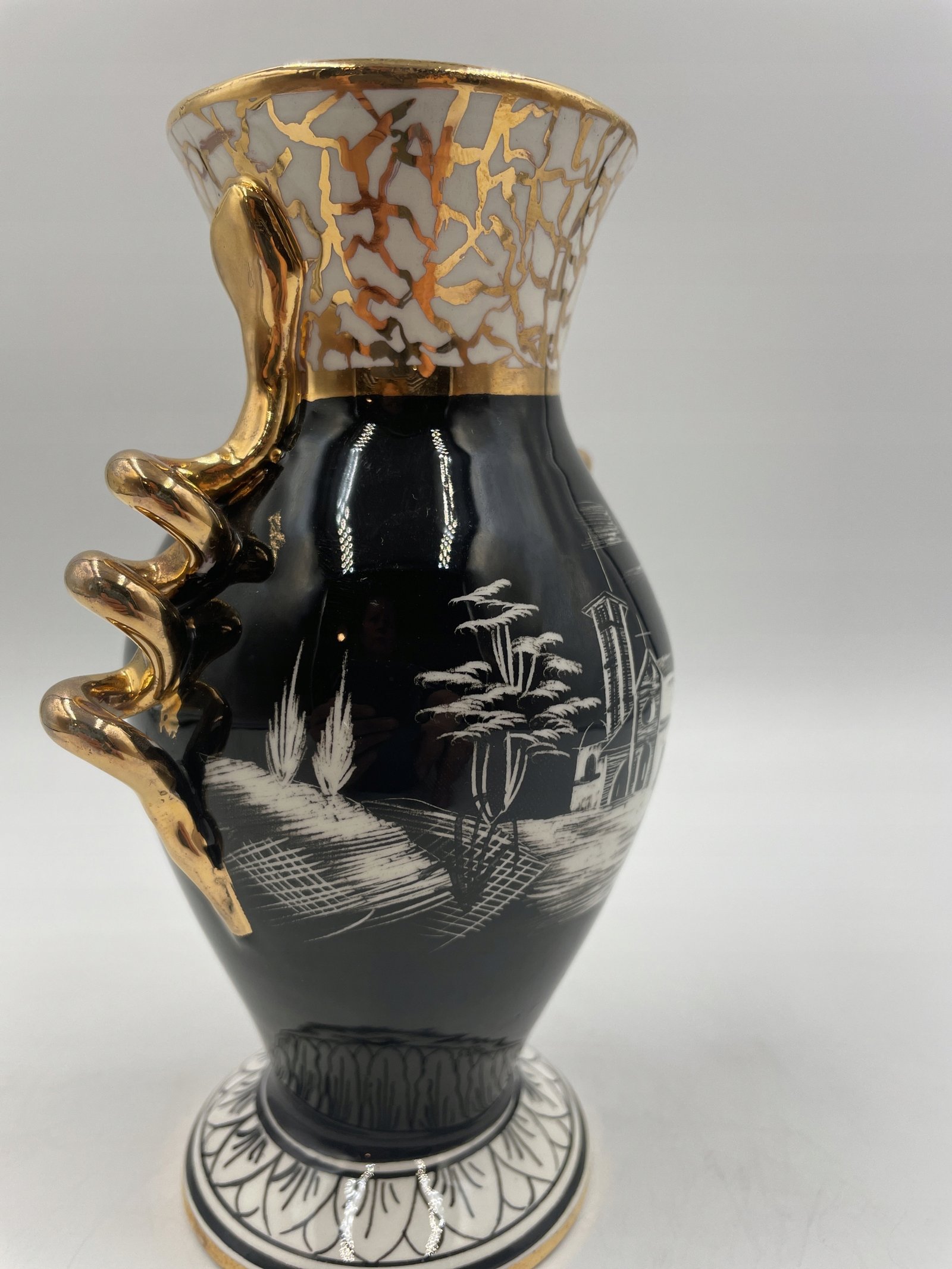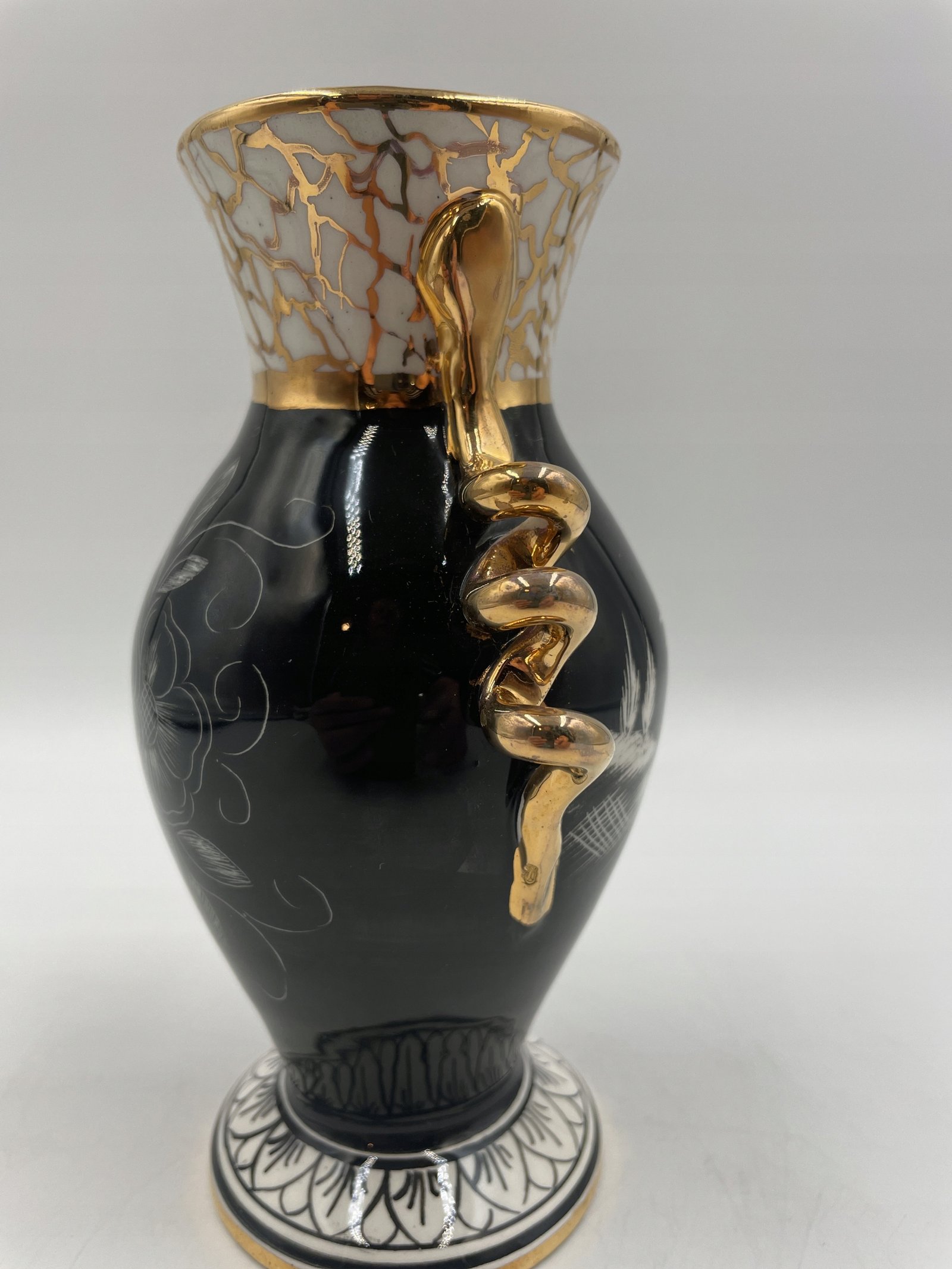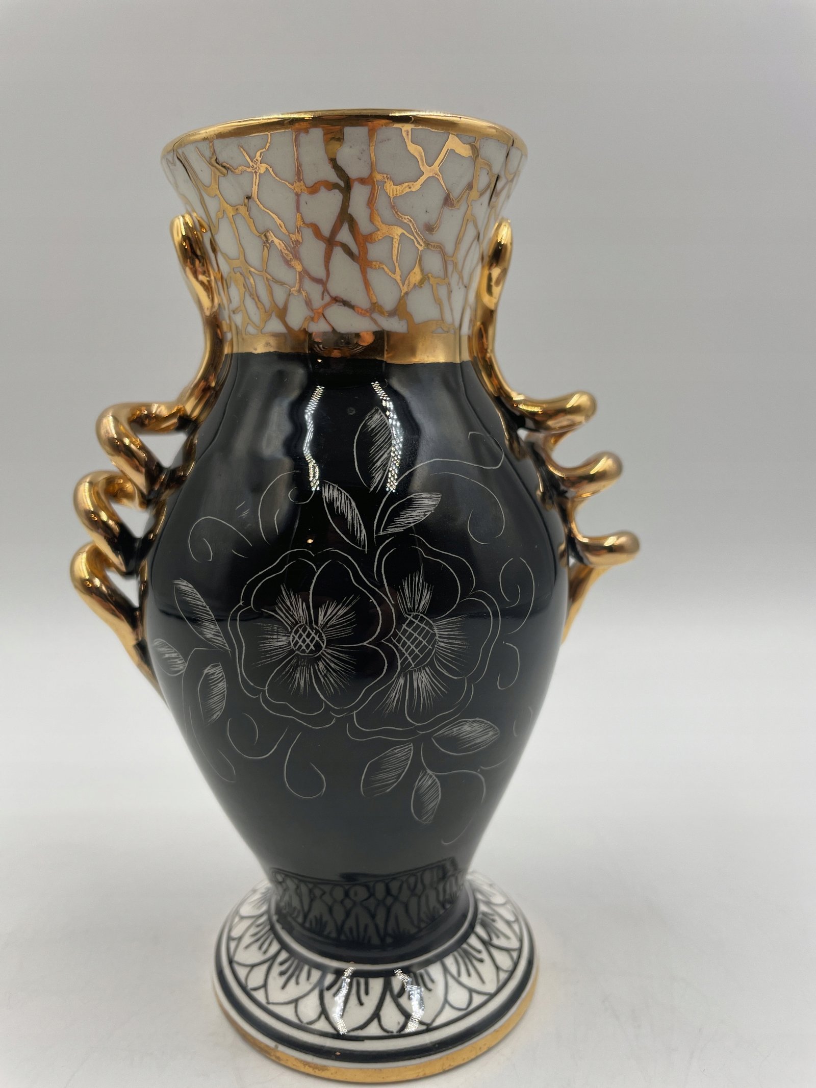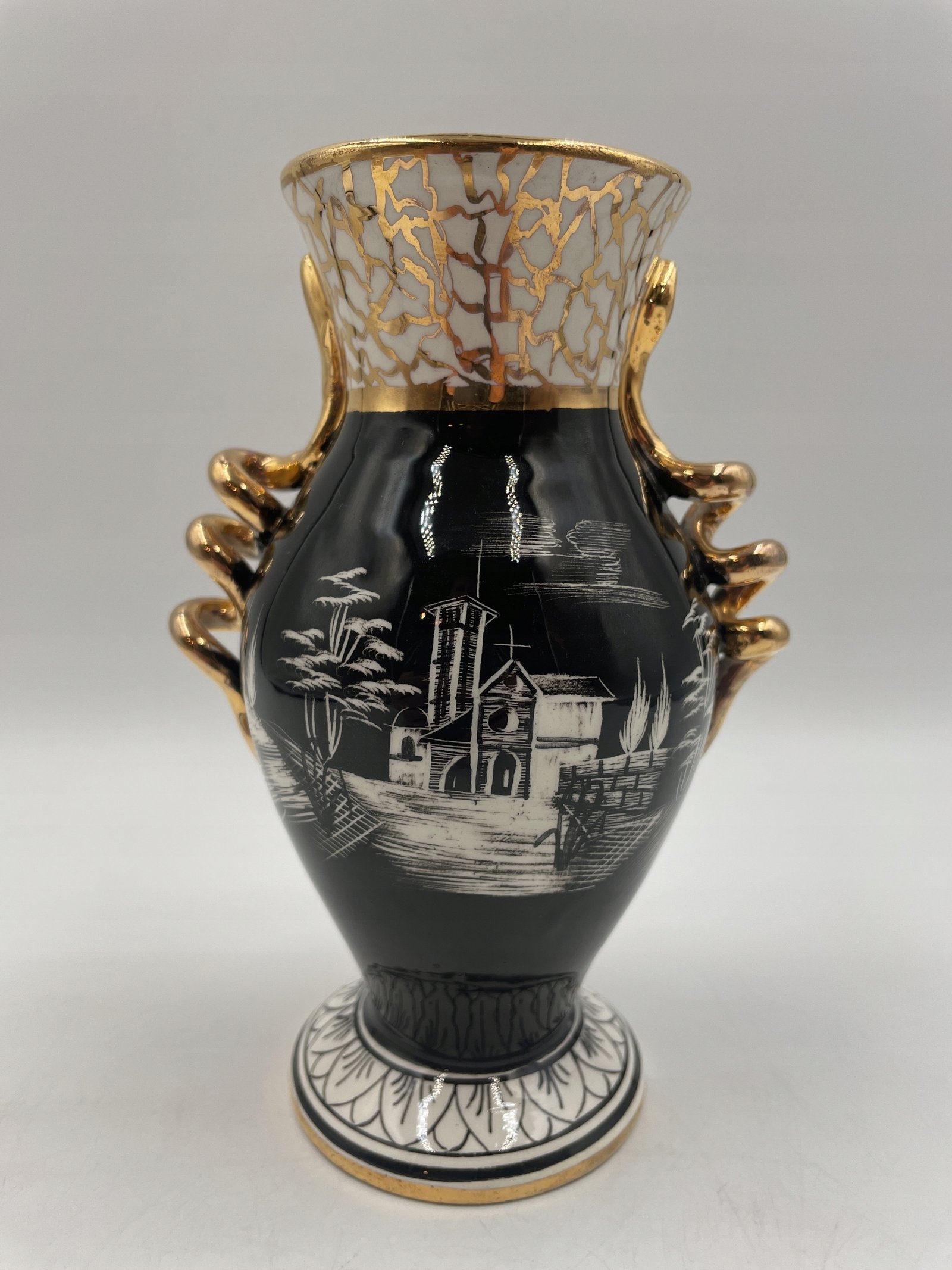 Luksusowy ceramiczny pozłacany wazon Martinelli e Vaccai Assisi 1950r.