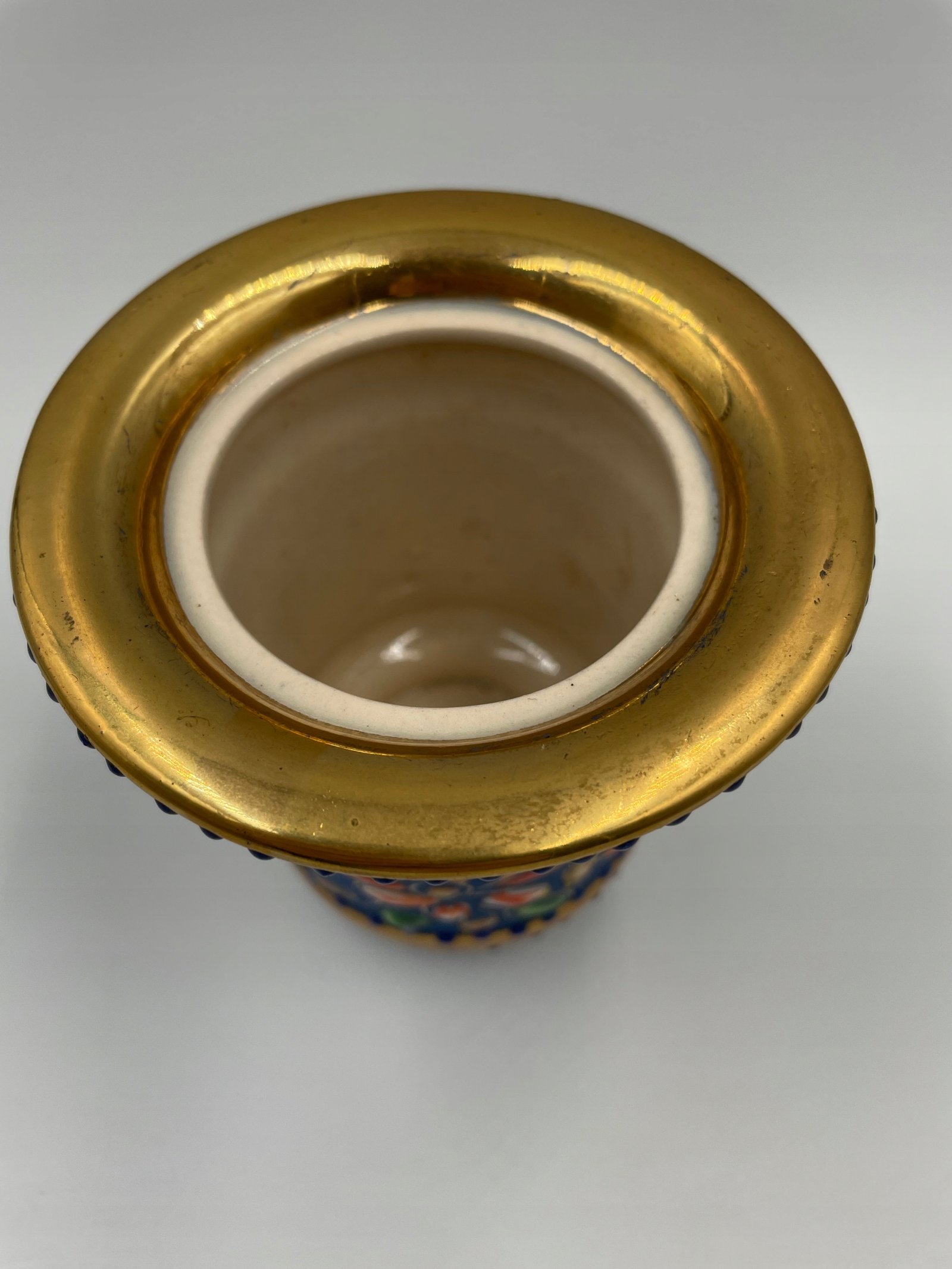 Vintage przedmioty mogą mieć drobne rysy, odpryski, niektóre zabrudzenia, ślady użytkowania i zmiany tekstury spowodowane starzeniem się. Ponieważ stopień zużycia może różnić się w zależności od indywidualnego postrzegania, prosimy o zrozumienie i akceptację cech starych przedmiotów. Będziemy zadowoleni, jeśli będziesz mógł/mogła cieszyć się niepowtarzalnym urokiem starych, dobrych przedmiotów.