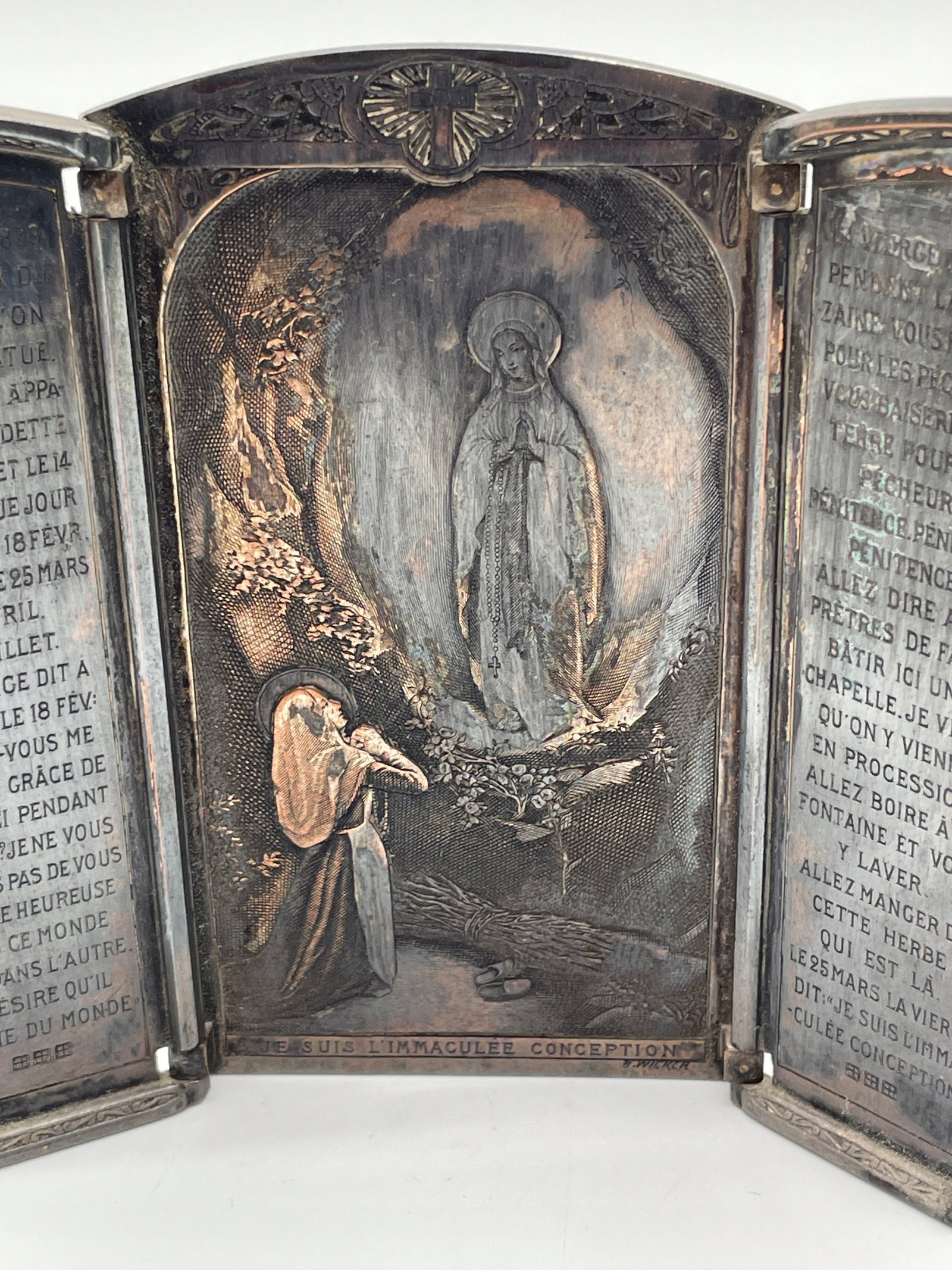 MADONNA Tryptyk posrebrzany B.WICKER Gr UNIKAT 1900r.