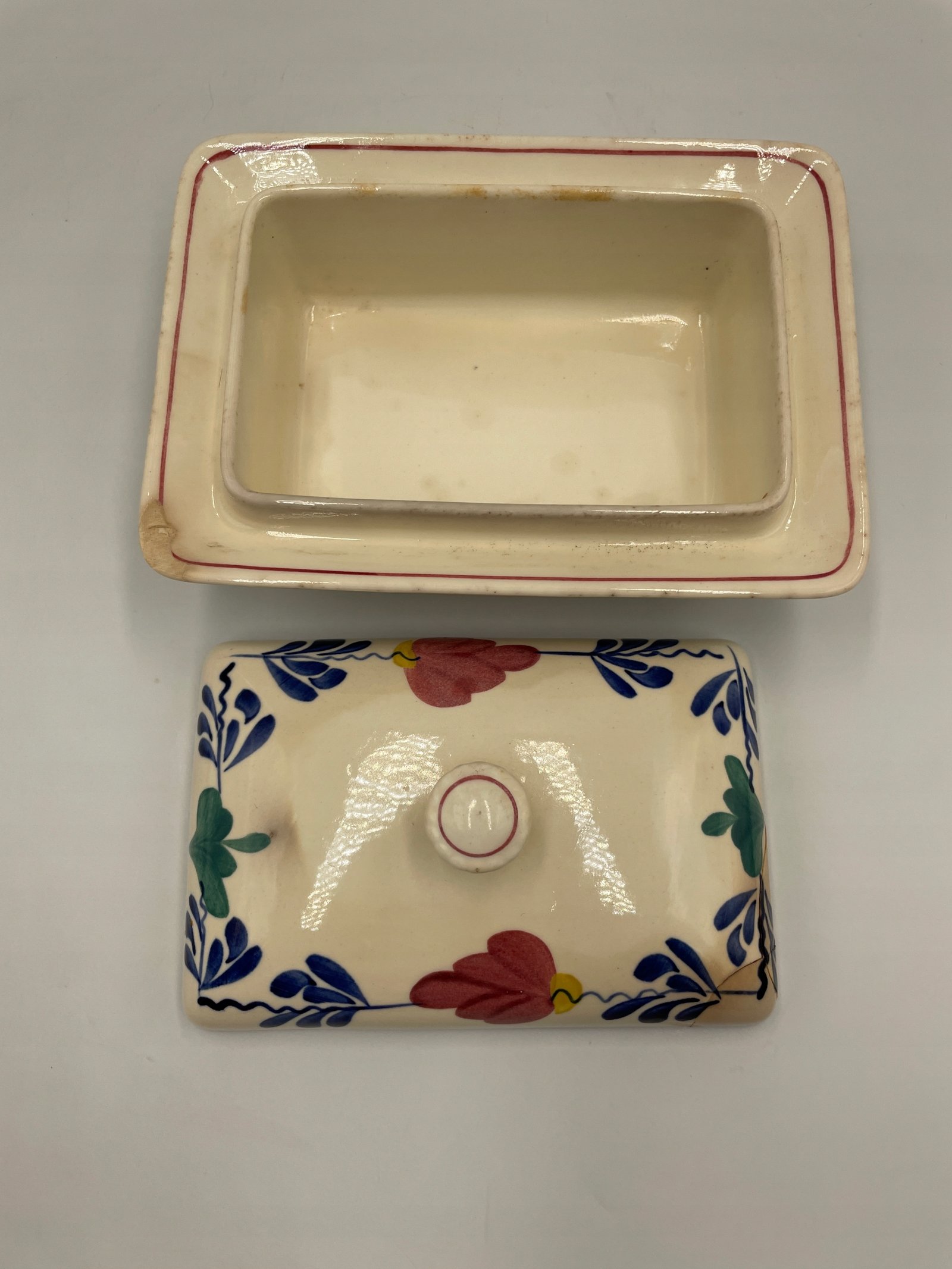 Vintage przedmioty mogą mieć drobne rysy, odpryski, niektóre zabrudzenia, ślady użytkowania i zmiany tekstury spowodowane starzeniem się. Ponieważ stopień zużycia może różnić się w zależności od indywidualnego postrzegania, prosimy o zrozumienie i akceptację cech starych przedmiotów. Będziemy zadowoleni, jeśli będziesz mógł/mogła cieszyć się niepowtarzalnym urokiem starych, dobrych przedmiotów.