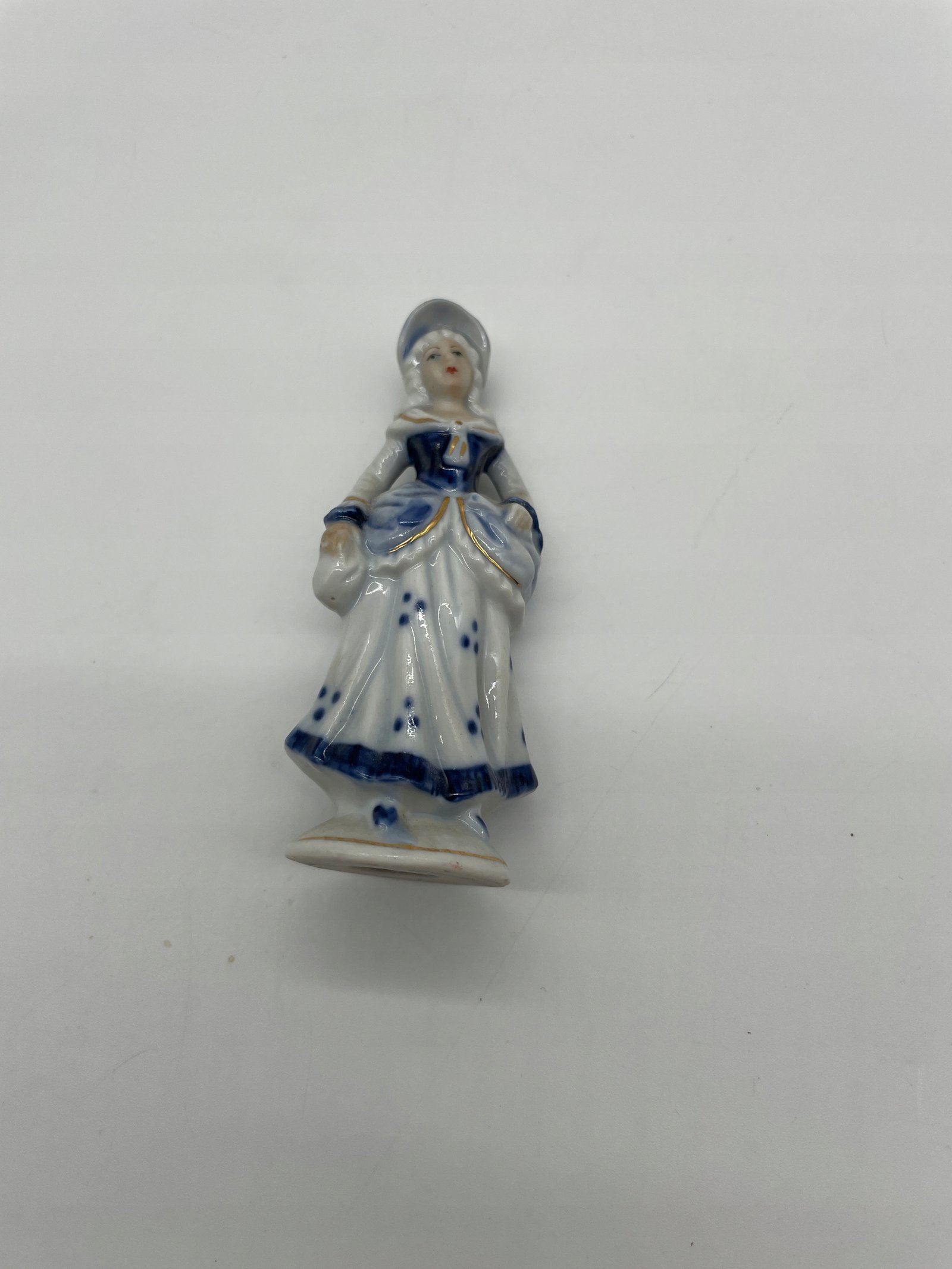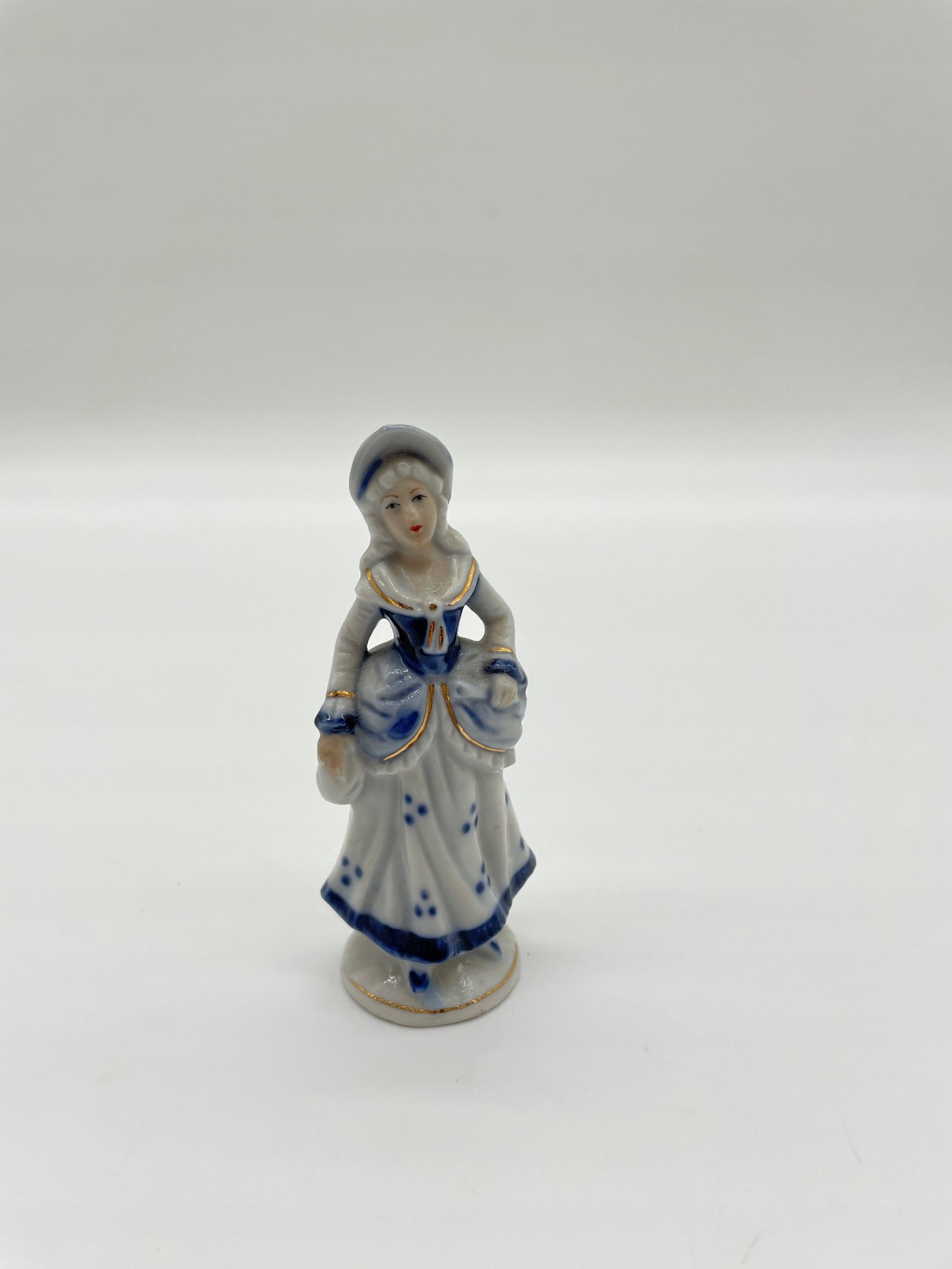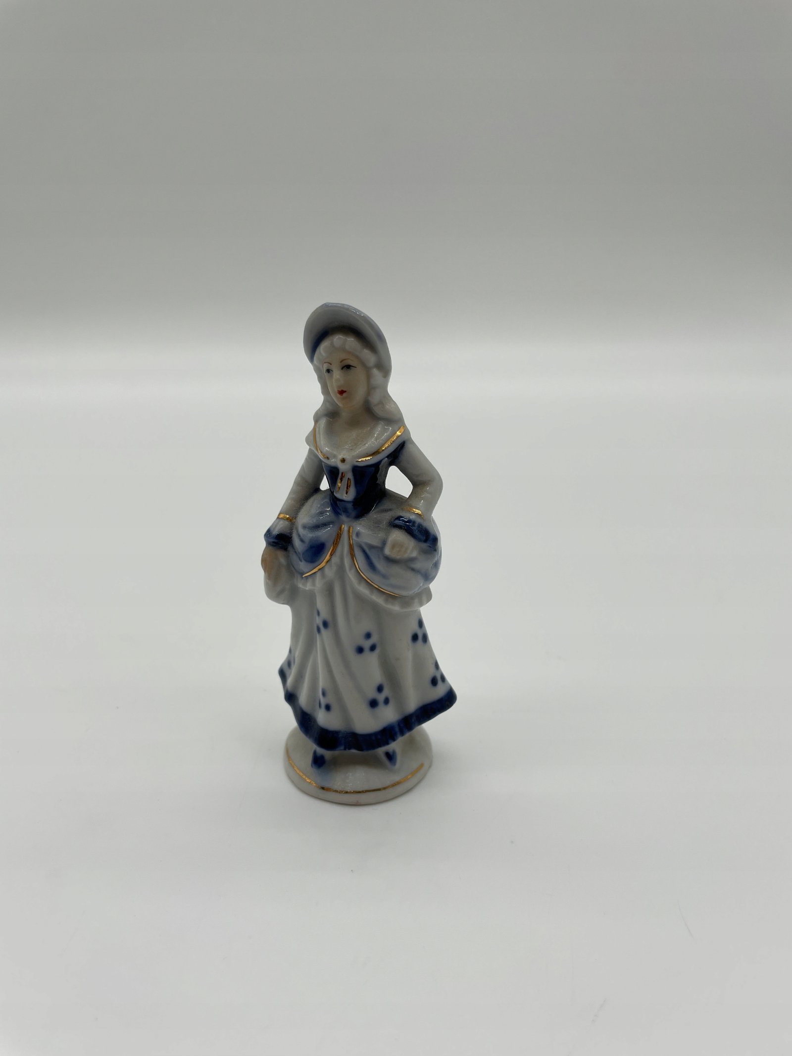 Miniaturowa figurka damy w kapeluszu