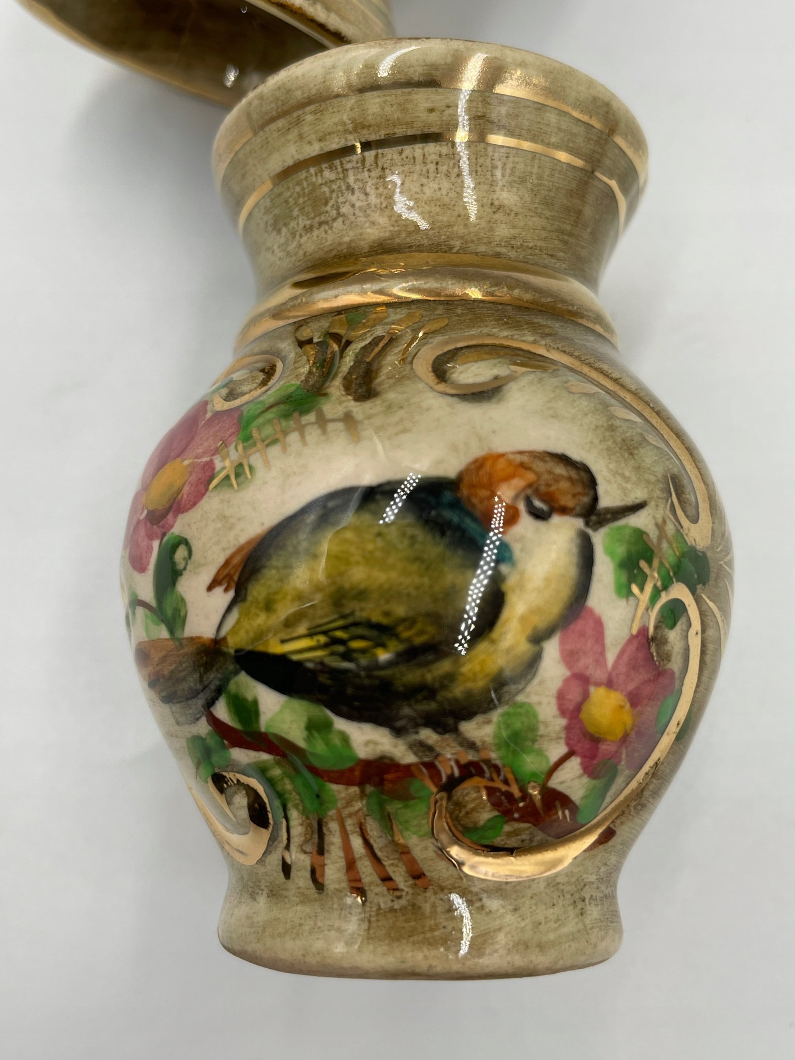 Przedmioty mogą mieć drobne rysy, odpryski, niektóre zabrudzenia, ślady użytkowania i zmiany tekstury spowodowane starzeniem się. Ponieważ stopień zużycia może różnić się w zależności od indywidualnego postrzegania, prosimy o zrozumienie i akceptację cech starych przedmiotów. Będziemy zadowoleni, jeśli będziesz mógł/mogła cieszyć się niepowtarzalnym urokiem starych, dobrych przedmiotów.