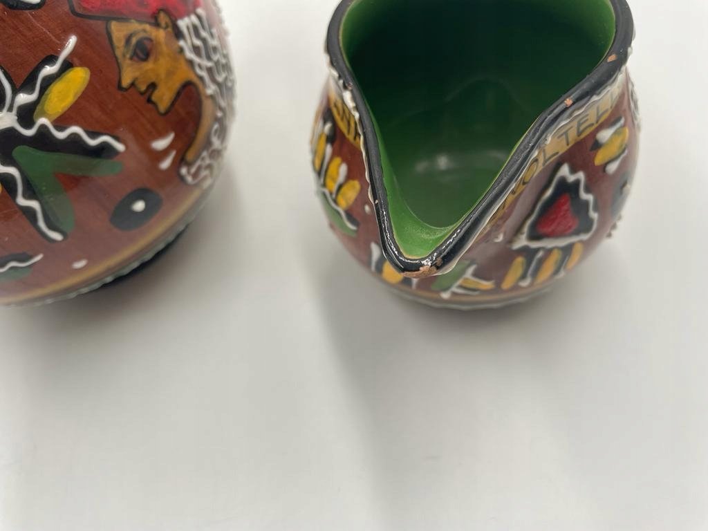 Vintage przedmioty mogą mieć drobne rysy, odpryski, niektóre zabrudzenia, ślady użytkowania i zmiany tekstury spowodowane starzeniem się. Ponieważ stopień zużycia może różnić się w zależności od indywidualnego postrzegania, prosimy o zrozumienie i akceptację cech starych przedmiotów. Będziemy zadowoleni, jeśli będziesz mógł/mogła cieszyć się niepowtarzalnym urokiem starych, dobrych przedmiotów.