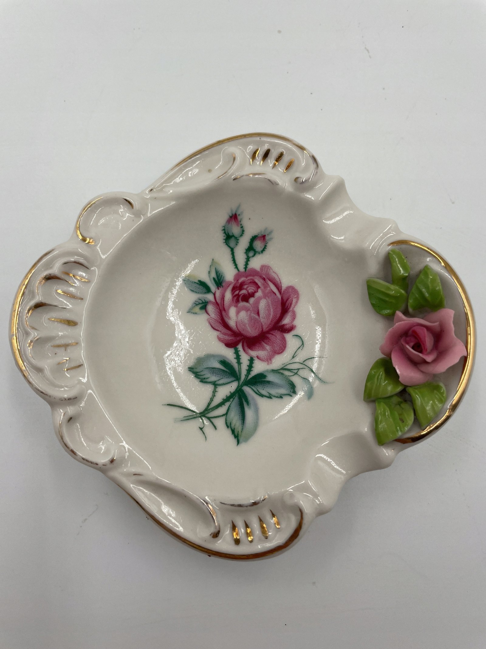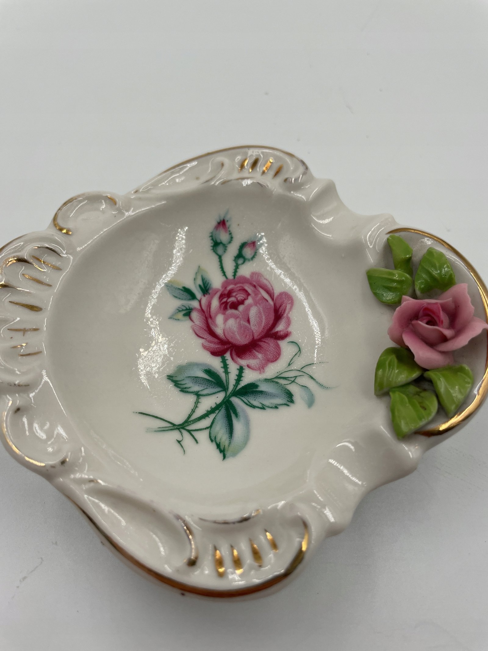 Popielniczka porcelanowa Niemcy lata 1950 reczne malowanie roze zlocenia
