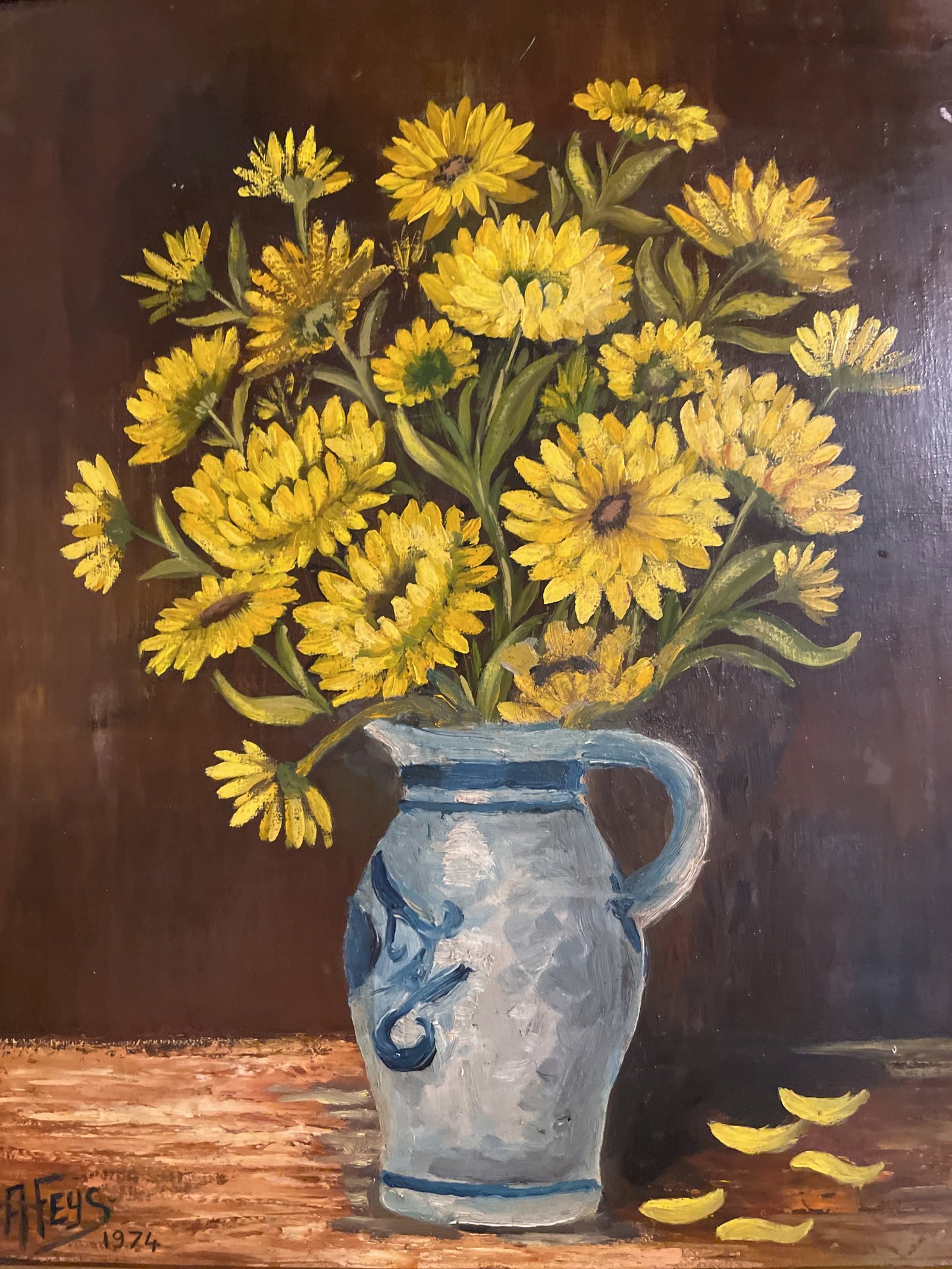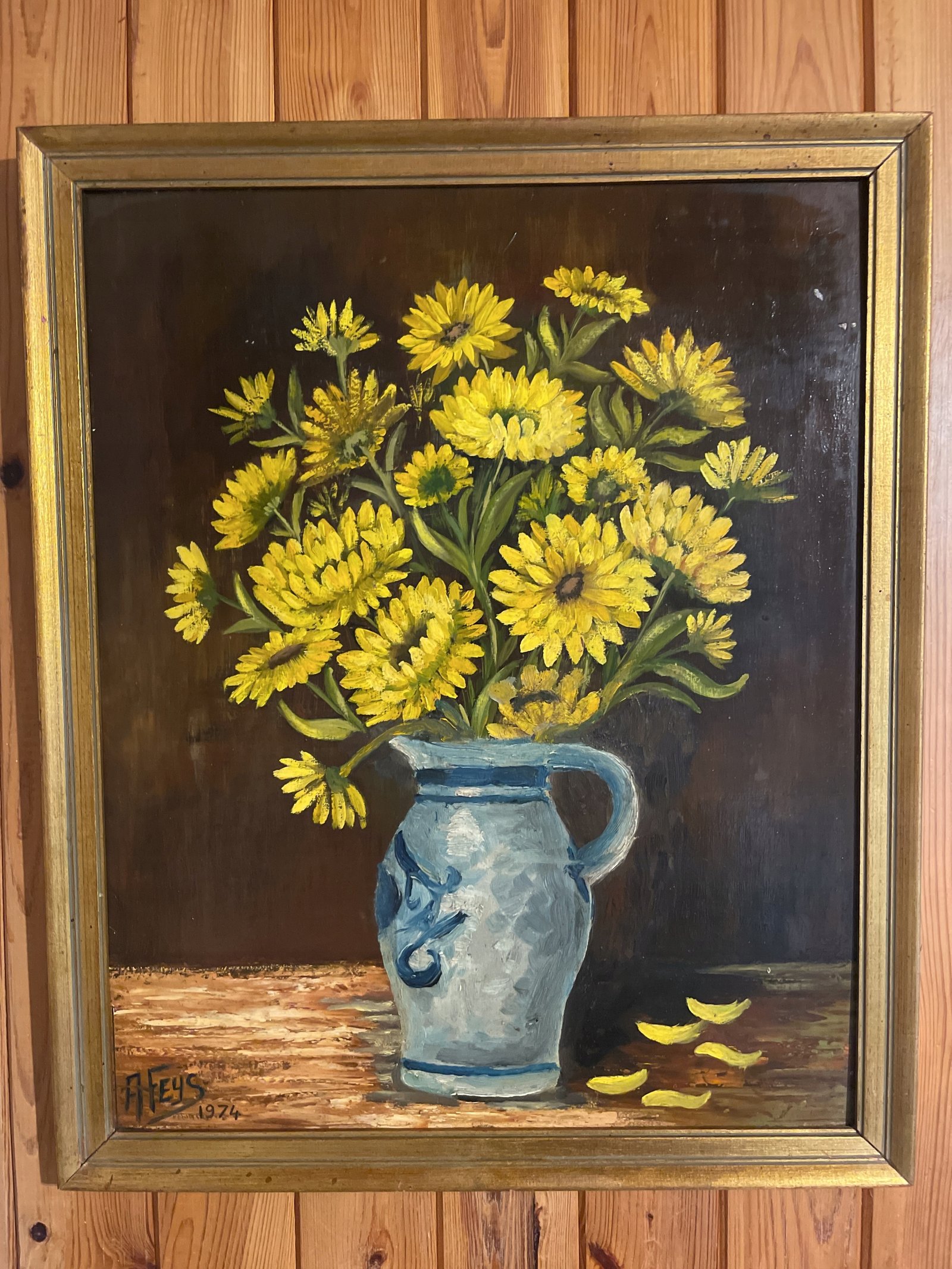 Obraz antyczny Kwiaty 1974r. 59,5×49,3cm z podpisem