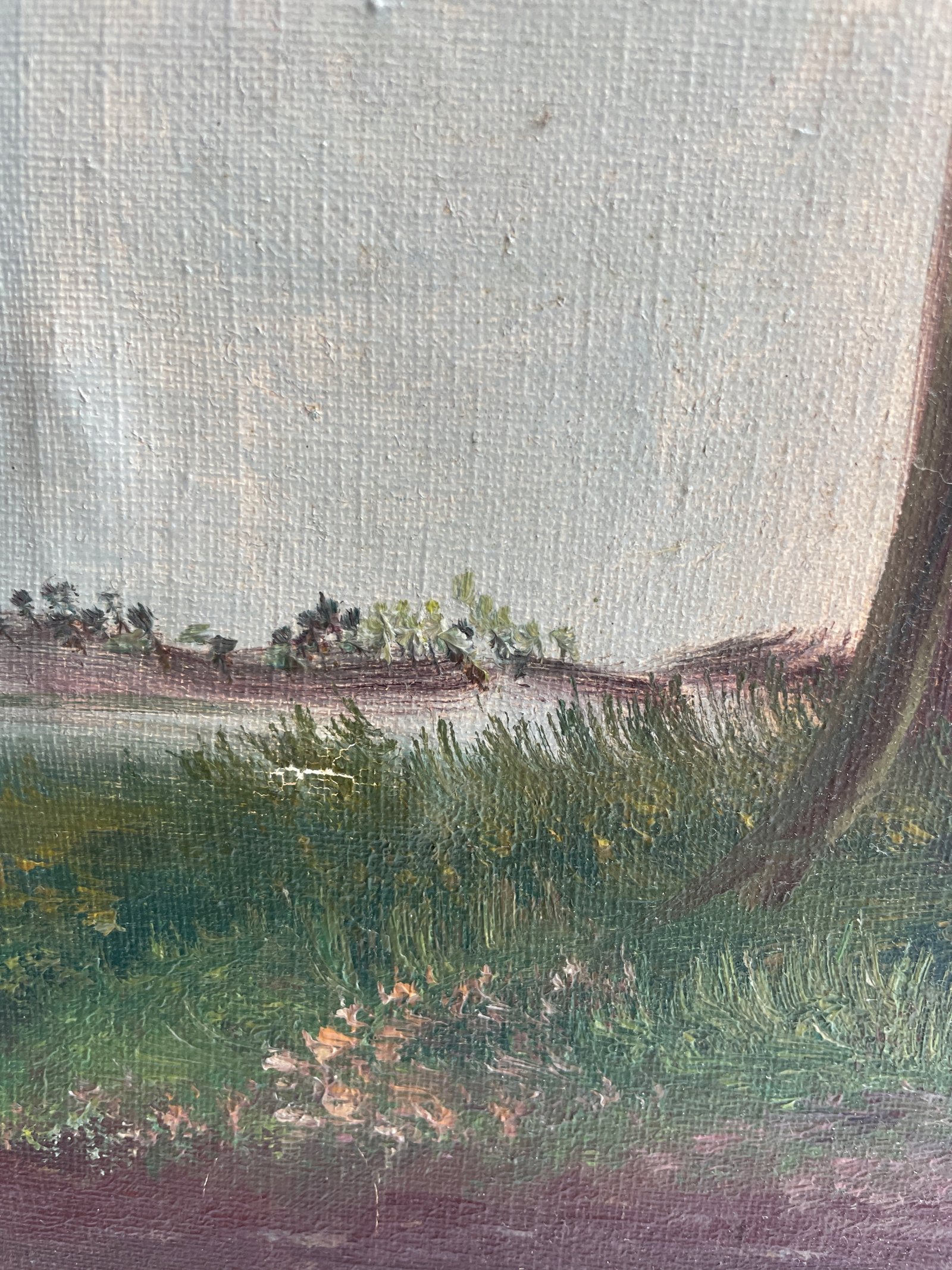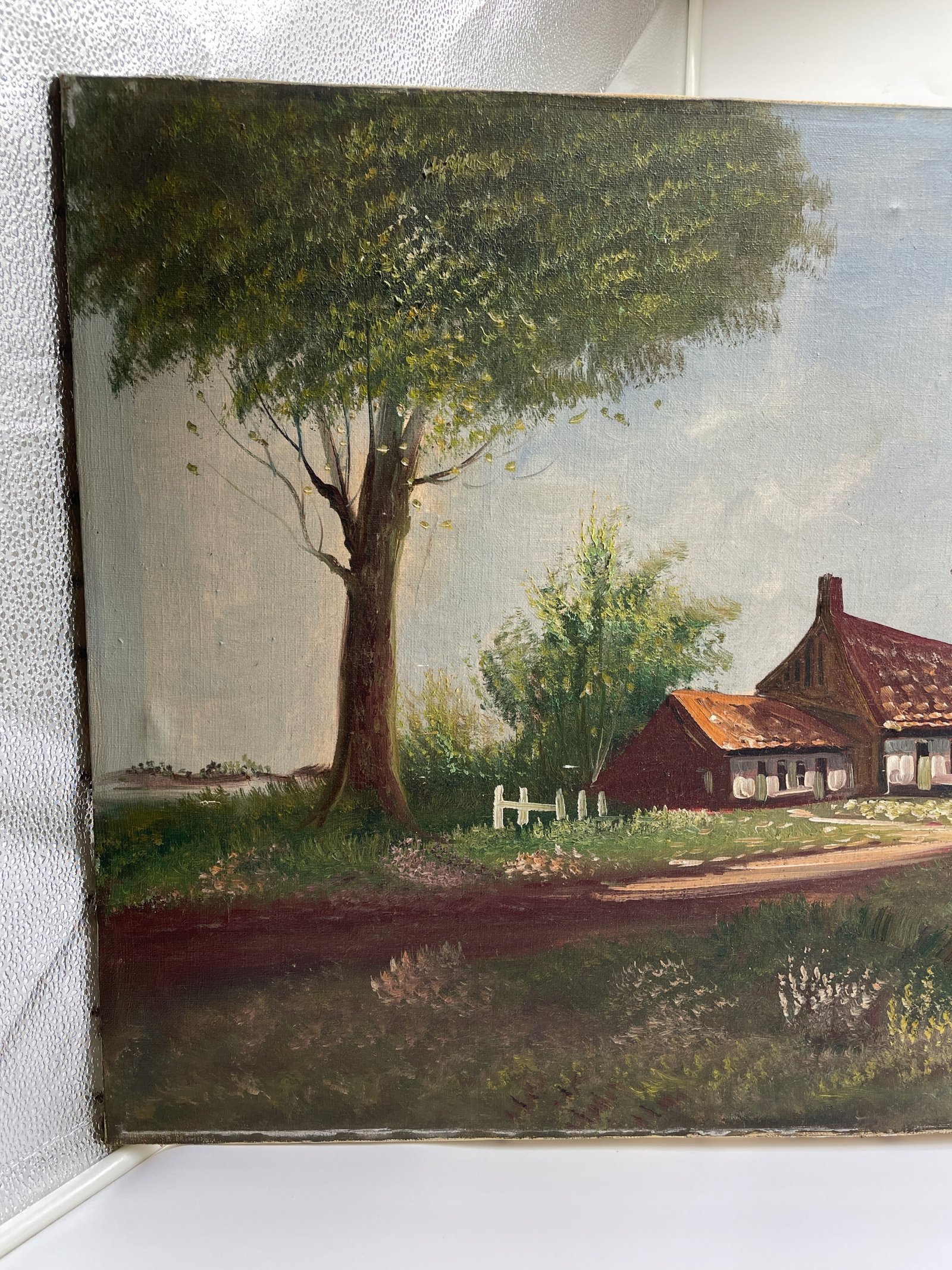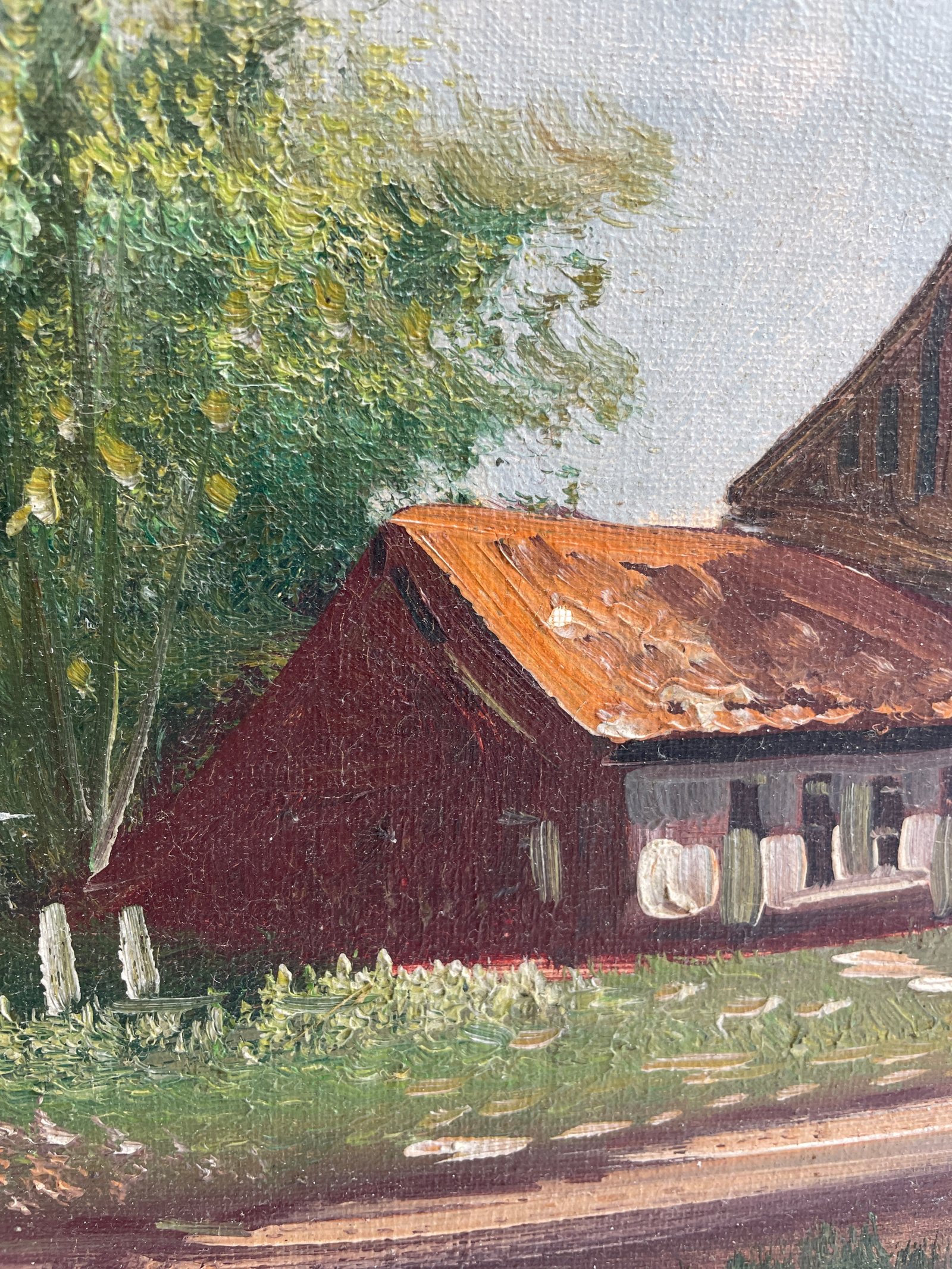 Obraz olejny na płótnie – Młyn i wiejski krajobraz – sygnowany