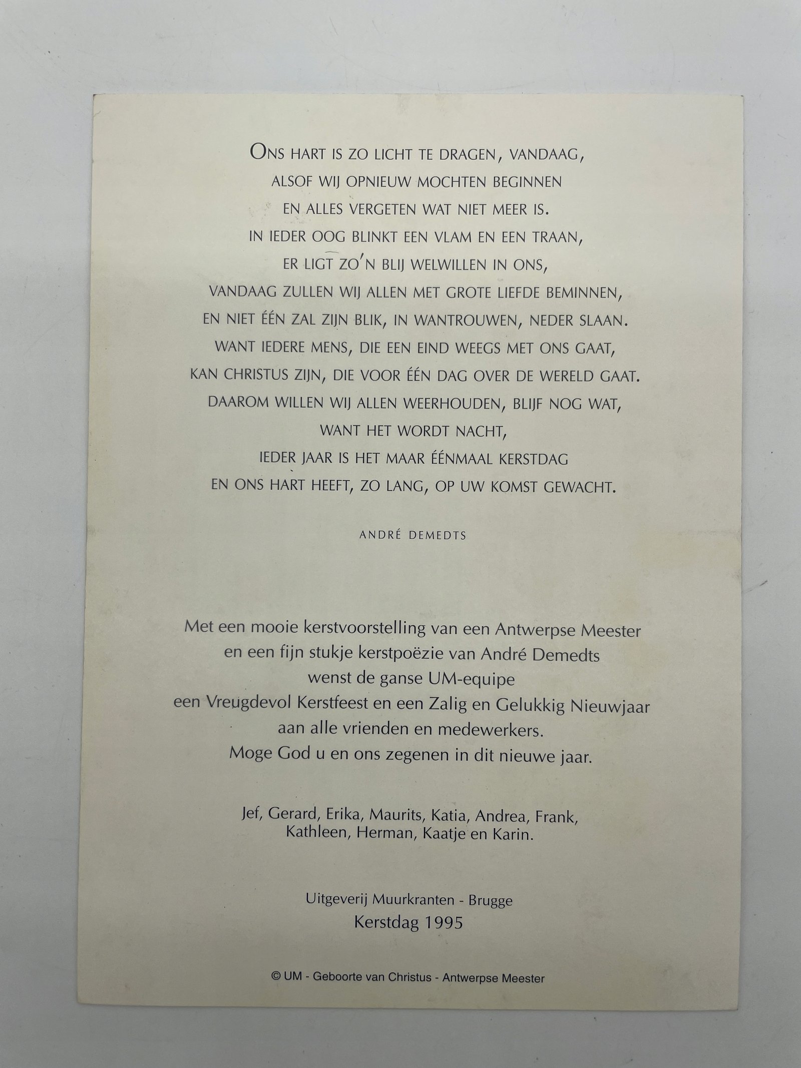 Obrazek Belgia 1995 Boze Narodzenie narodziny Chrystusa Uitgeverij Muurkranten 22х16cm