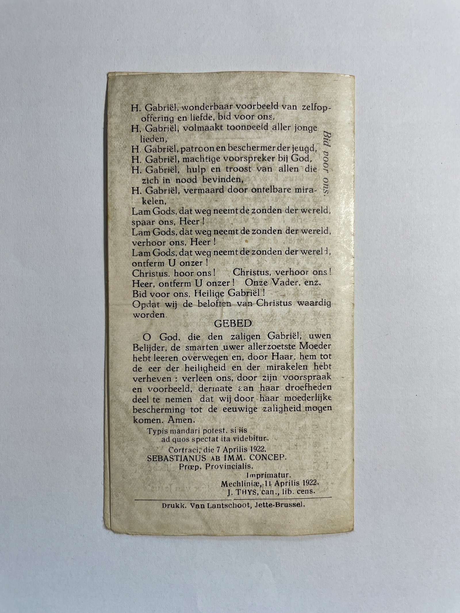 Obrazek Belgia 1922 święty Gabriel modlitwa i litania