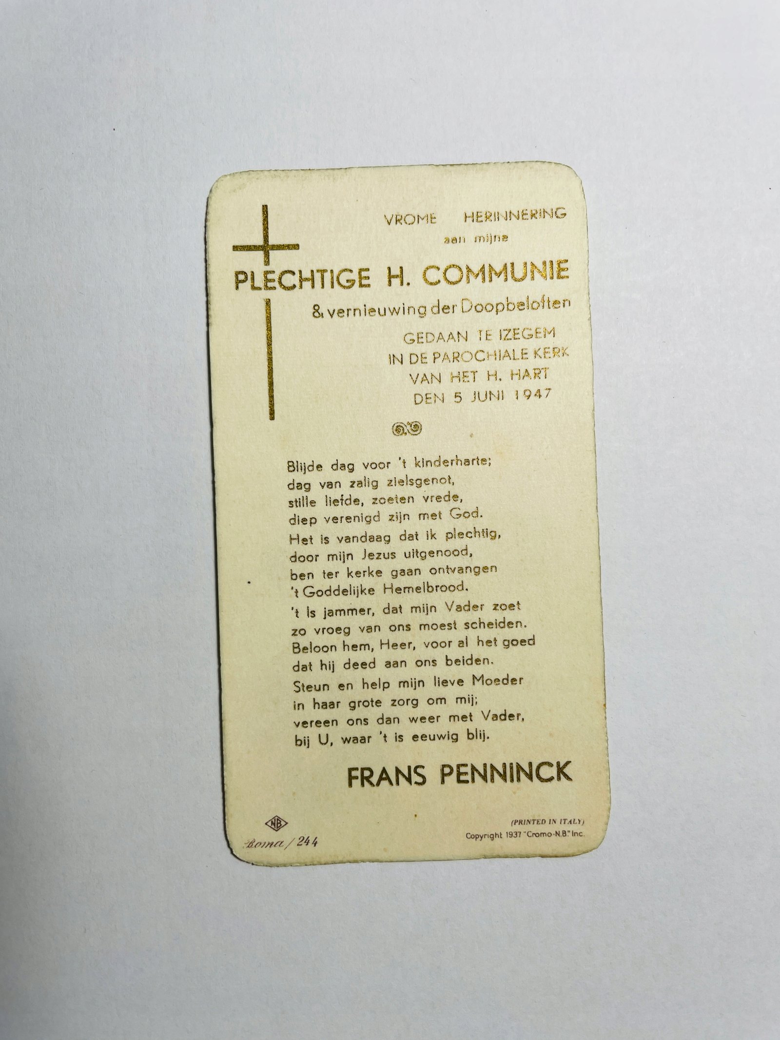 Obrazek Belgia 1947 chłopiec w modlitwie przy ołtarzu Frans Penninck 10,5х6