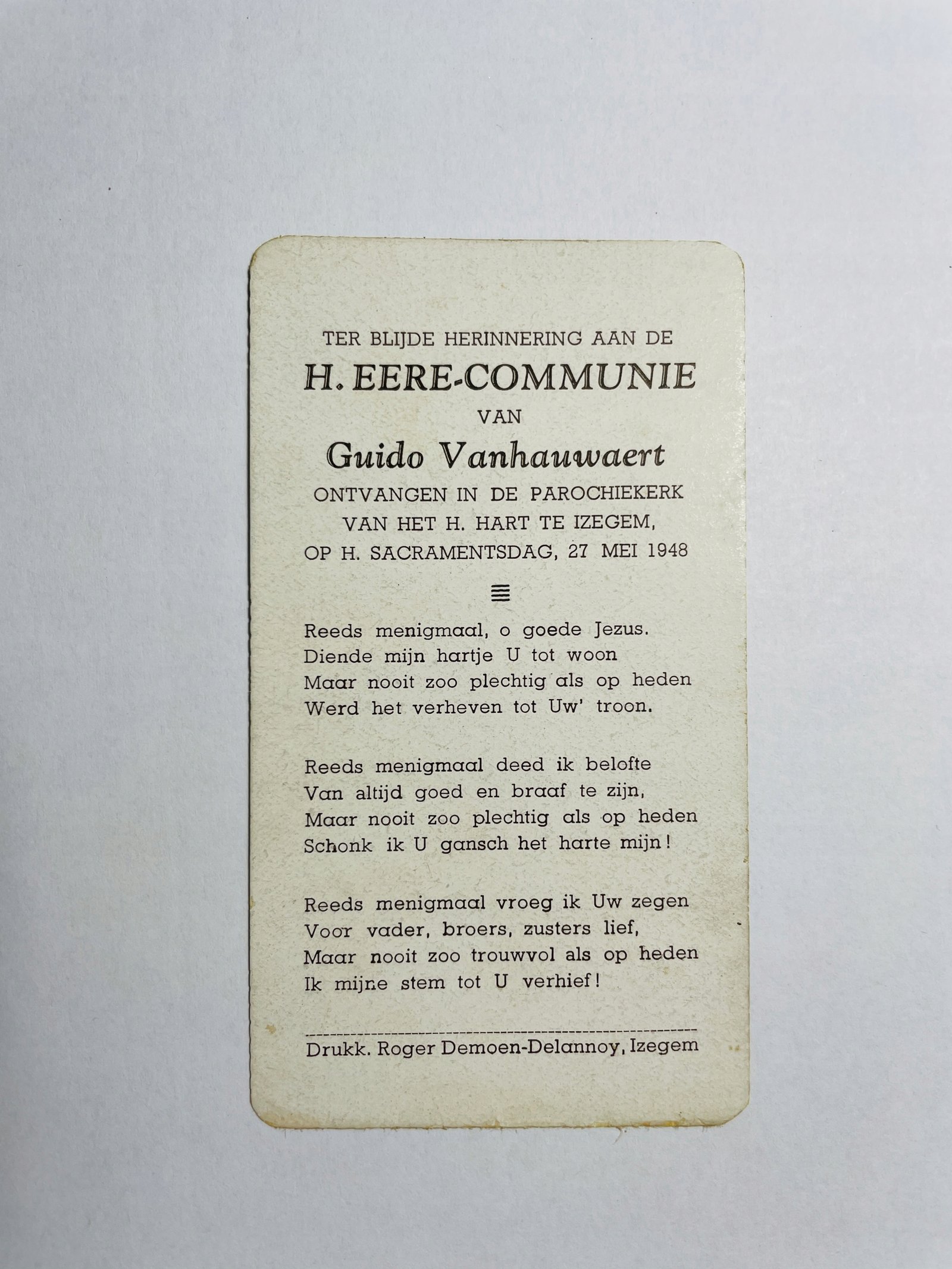 Obrazek Belgia 1948 H. Komunia Guido Vanhauwaert druk Włochy