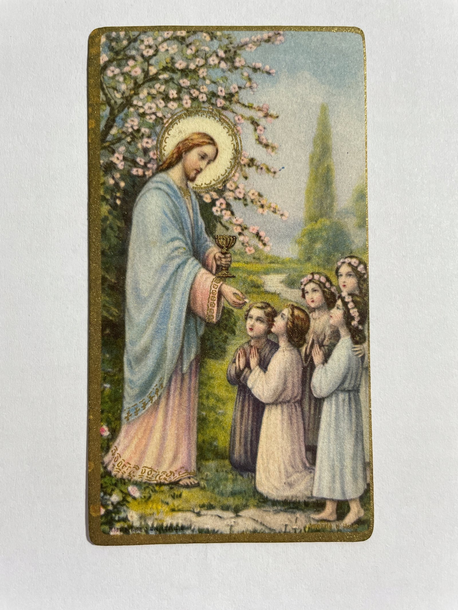 Obrazek Włochy 1944 Pierwsza Komunia dzieci pastele 10,5х5,5 cm.