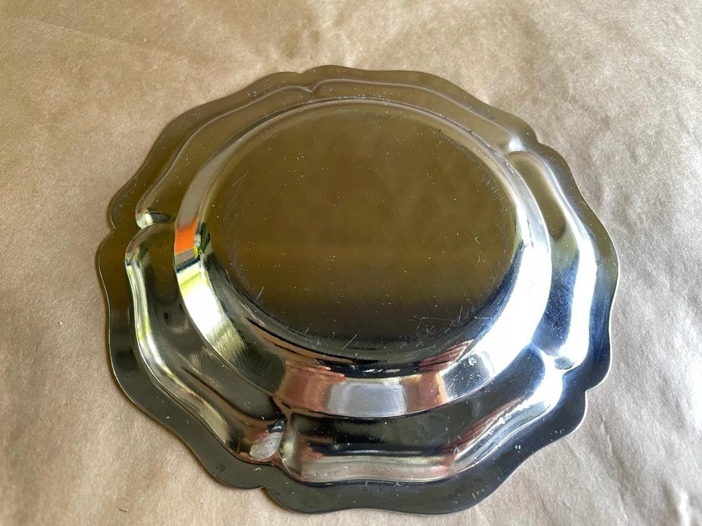 OKRĄGŁA SREBRNA TACA Z DEKOROWANYM OTOKIEM